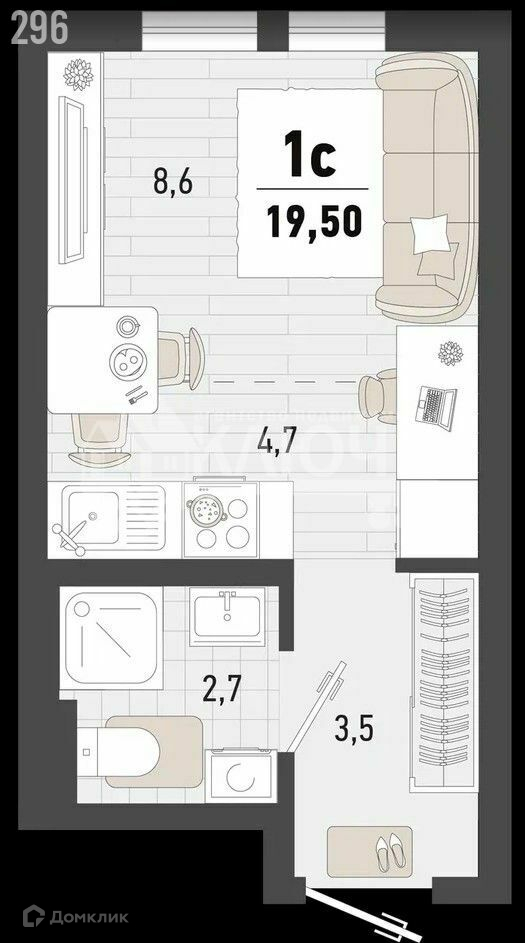 Общая площадь 19 м2