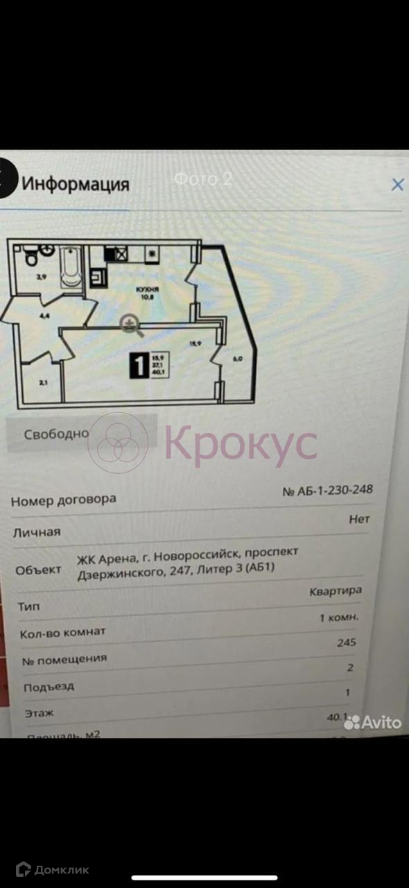 1-комнатная квартира, 40 м2, этаж 1 / 20, на продажу в Новороссийске, улица Котанова, 2