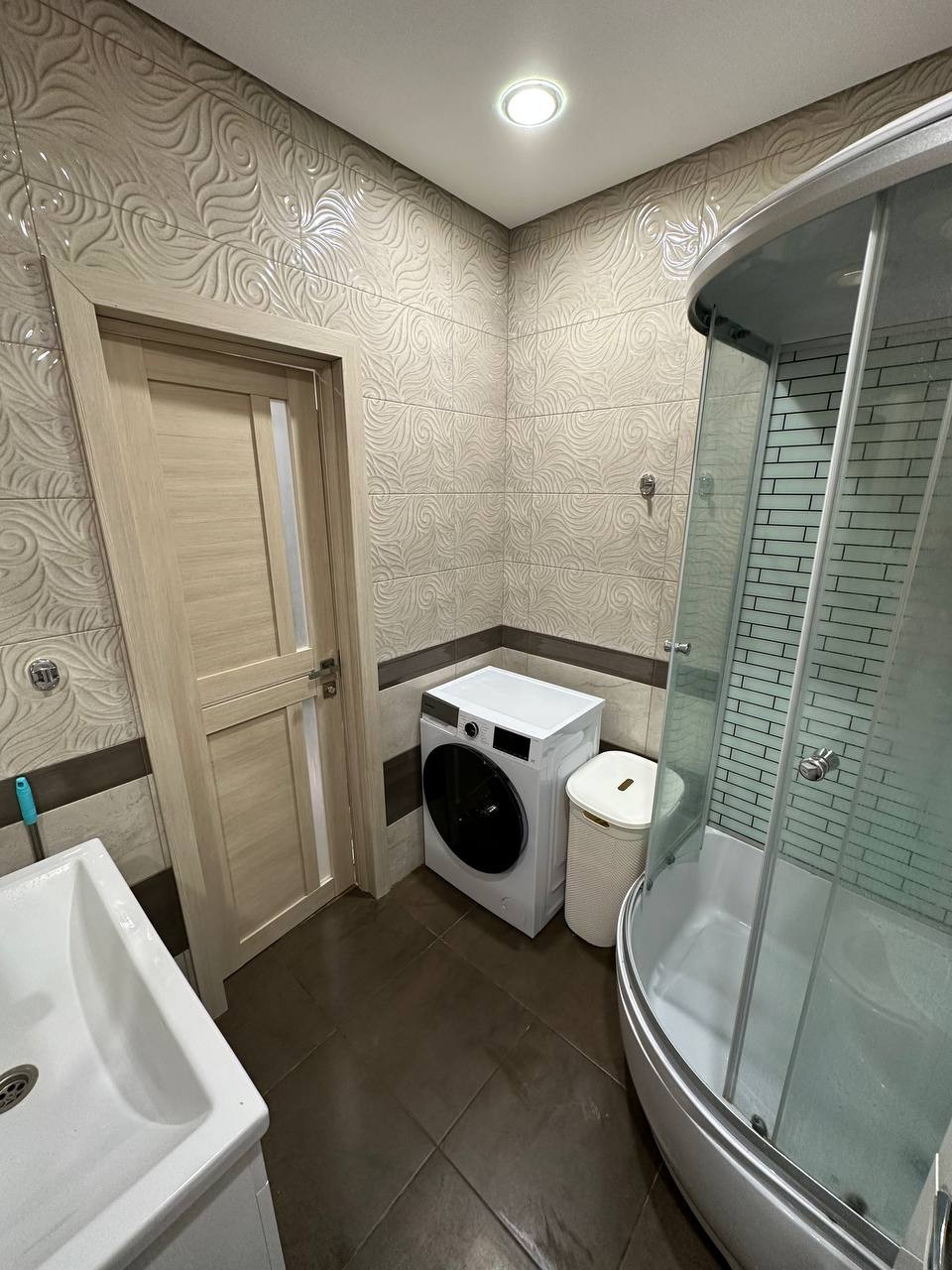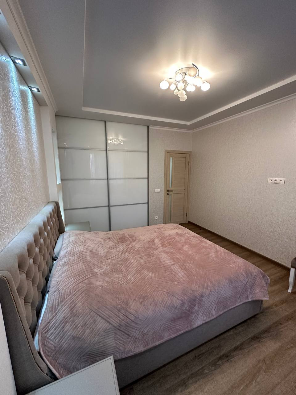 Ремонт выполнен в светлых пастельных тонах, а также в интерьере выполнен светодизайн.