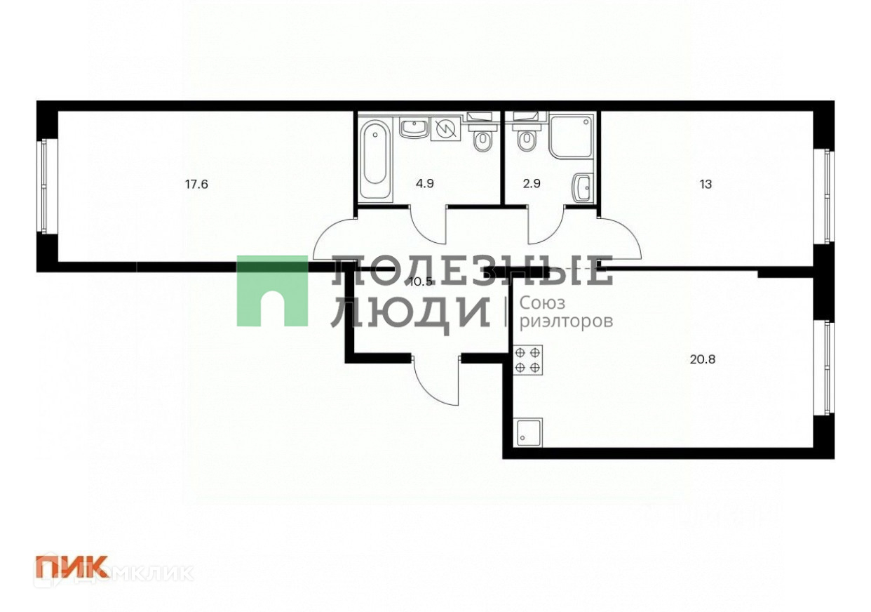 Общая площадь 68.7 м2