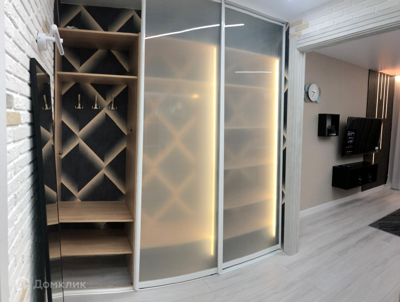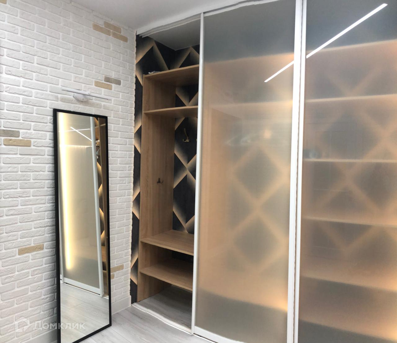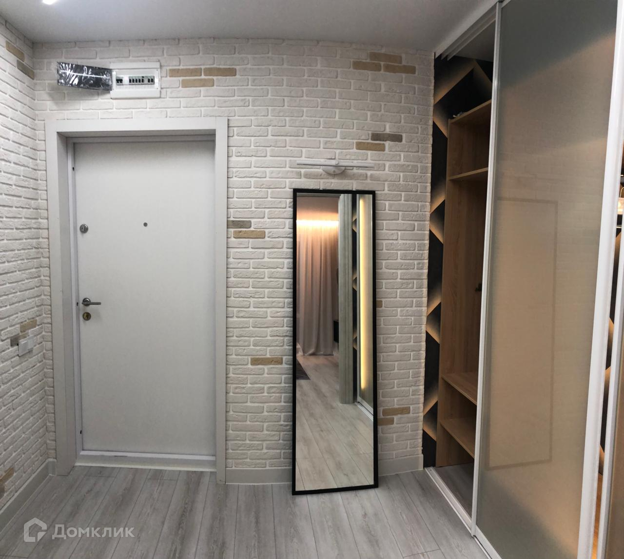В ремонте использованы качественные материалы: стены оформлены декоративной кирпичной кладкой, оклеены обоями 3Д, потолок без люстр – «Световые линии» - позволяет максимально открыть пространство и через отражения в стеклах добавляет света, керамогранит в санузле выполнен в современном дизайне, полы выложены светлым ламинатом под дерево, лоджия застеклена и отделана белым кирпичом.