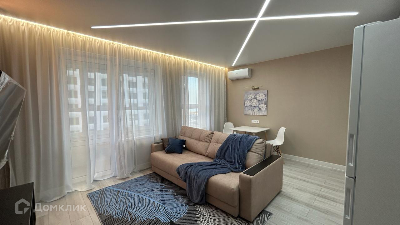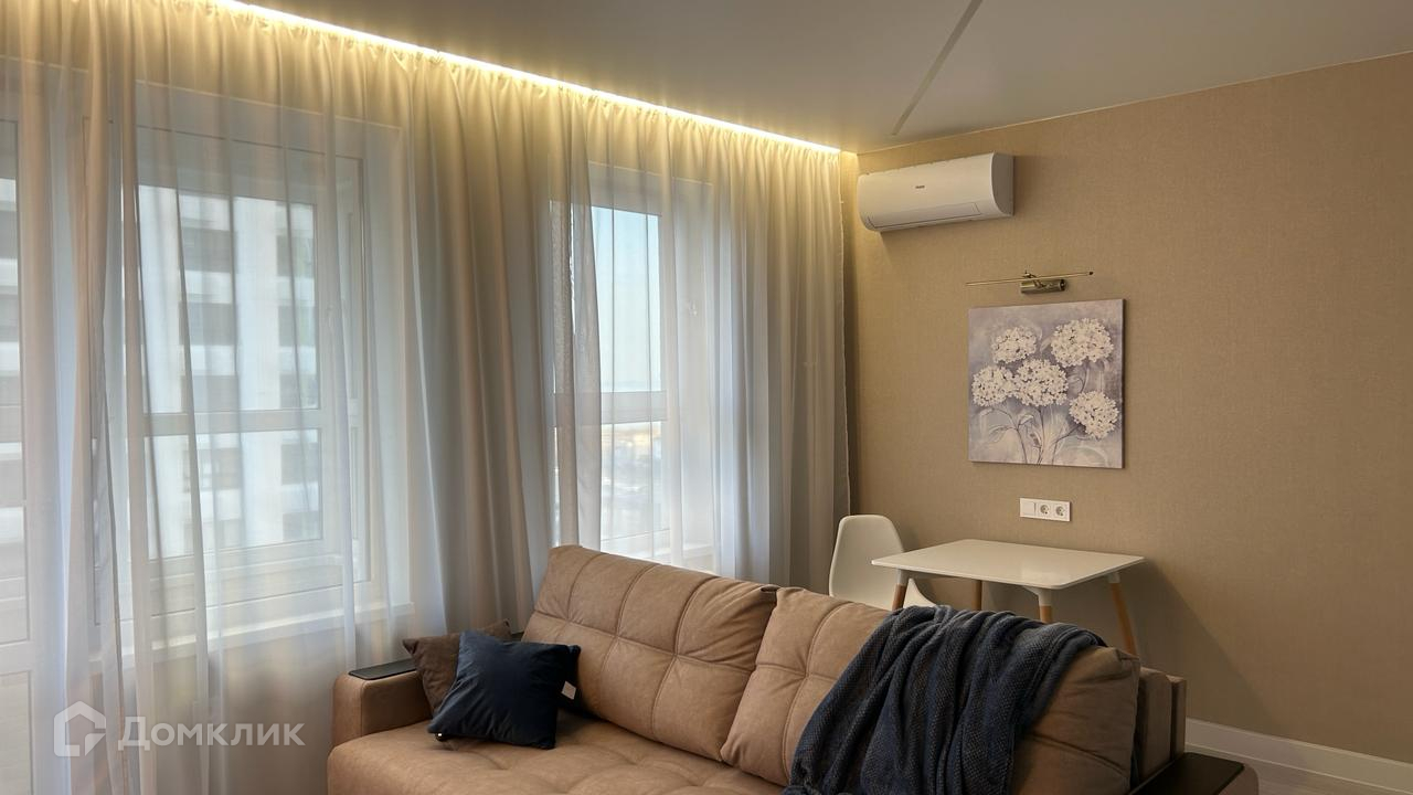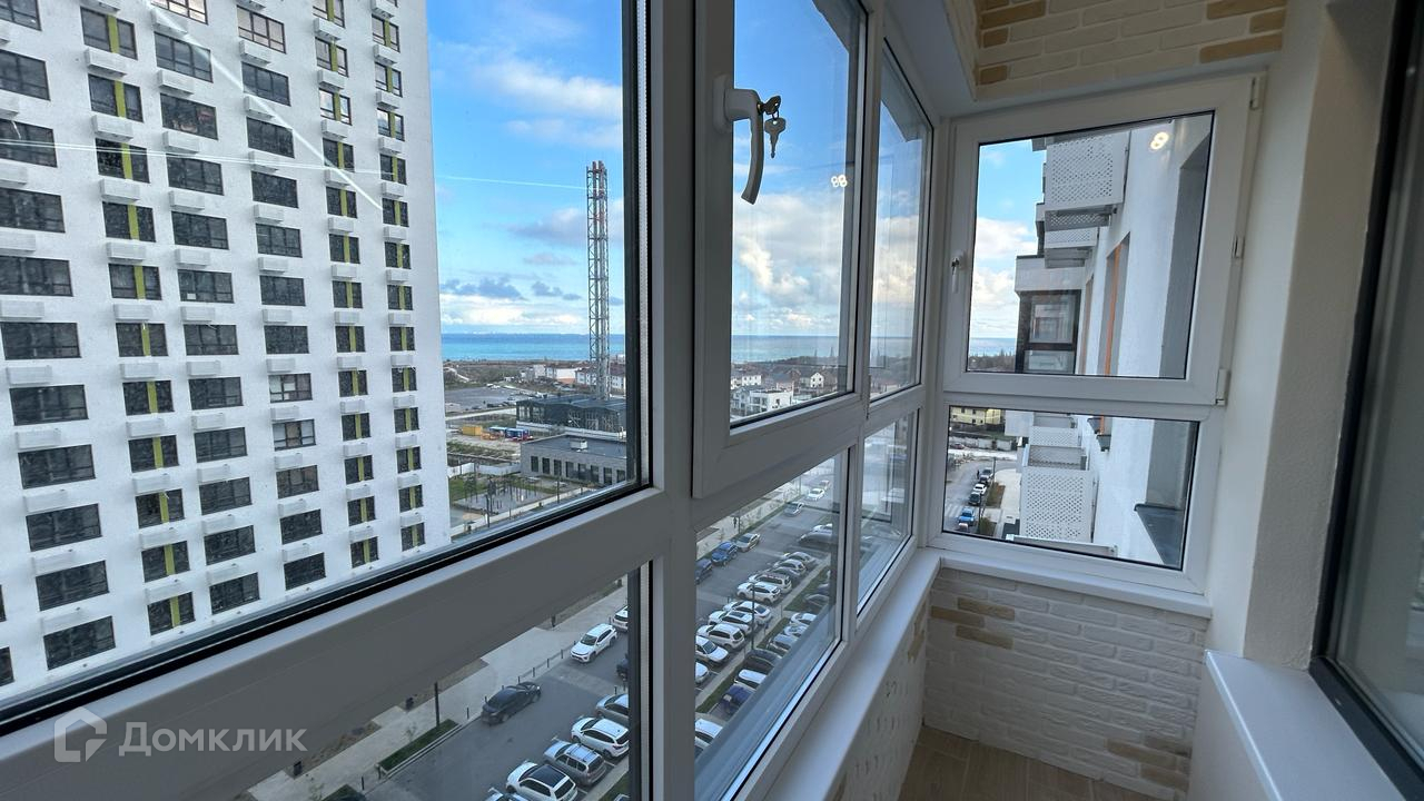 Уютная современная квартира-студия в ЖК Черноморский 2 на 8 этаже с панорамными окнами и красивыми видами на открытое море. Дом находится в престижном Южном районе города Новороссийска.