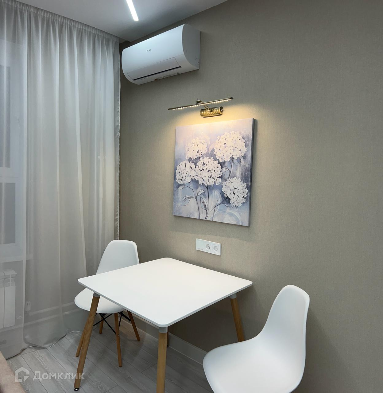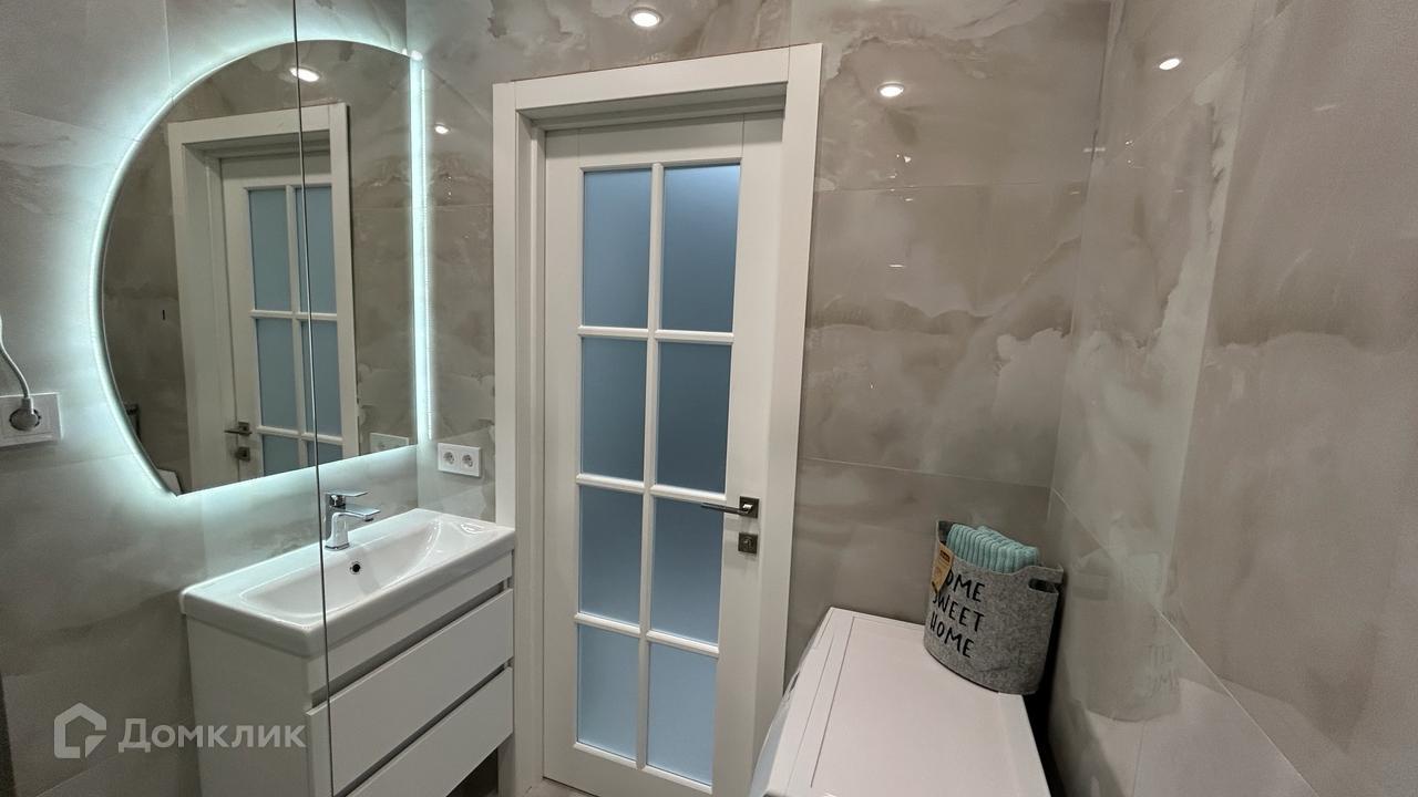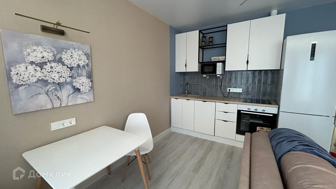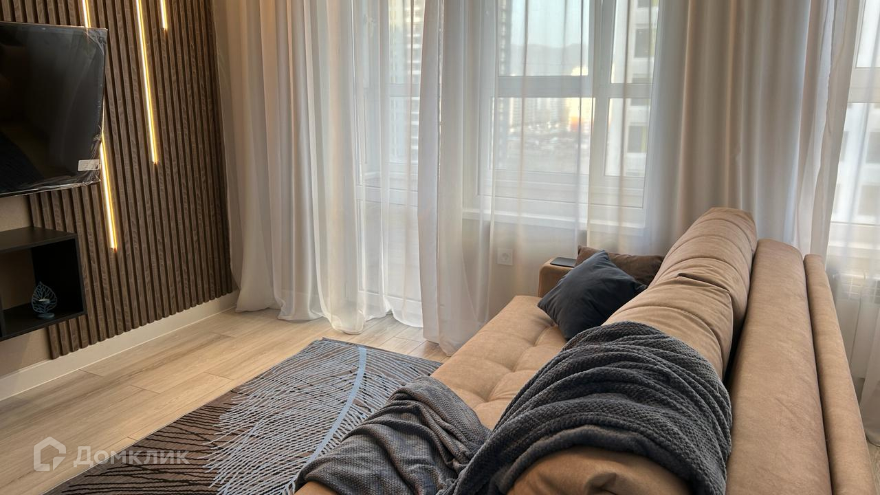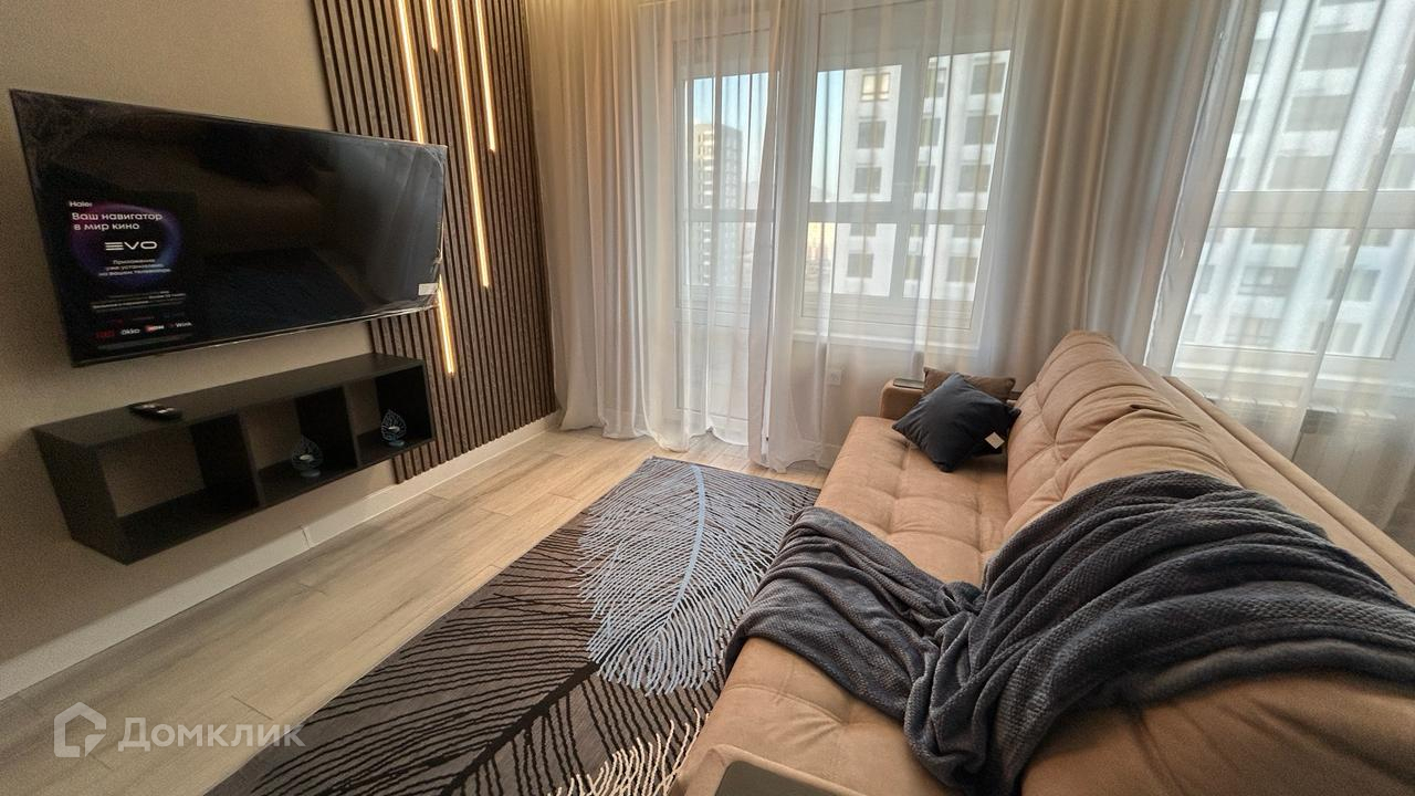 Квартира полностью меблирована, санузлы укомплектованы сантехникой, установлена стиральная машинка, кухня современного исполнения со всей необходимой техникой (духовка, варочная поверхность, посудомойка, микроволновка, вытяжка), большой удобный диван разделяет зону кухни и гостинной, телевизор СМАРТ фирмы Haier, шторы с подсветкой. Квартира оформлена декоративной подсветкой, большая прихожая со шкафом. ПОДАРОК покупателю – стол - трансформер, который можно использовать, как журнальный, обеденный или рабочий.