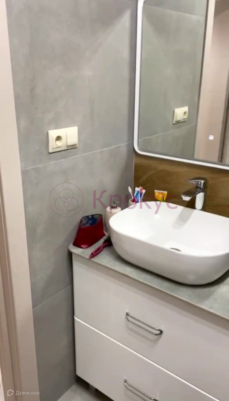 Санузел совмещён с душевой кабиной (тропический душ), безободковый унитаз с инсталляцией, нагреватель воды, зеркало сенсорное. Мебель, техника остаётся!
