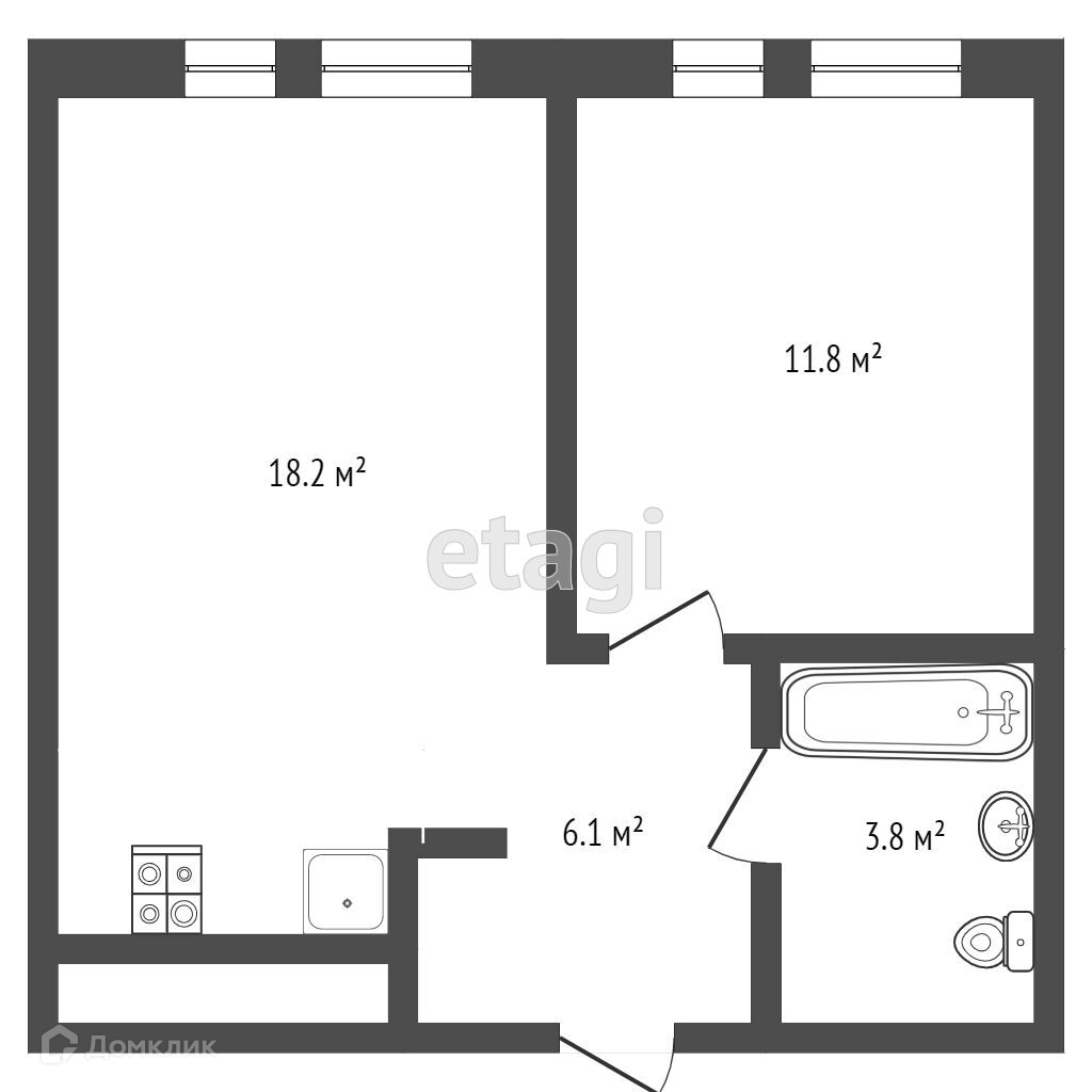 Общая площадь 35.6 м2