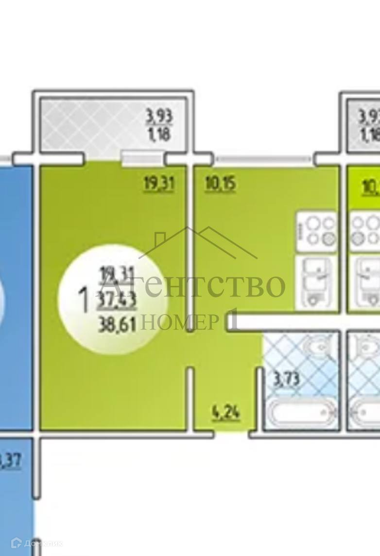 Общая площадь 39 м2