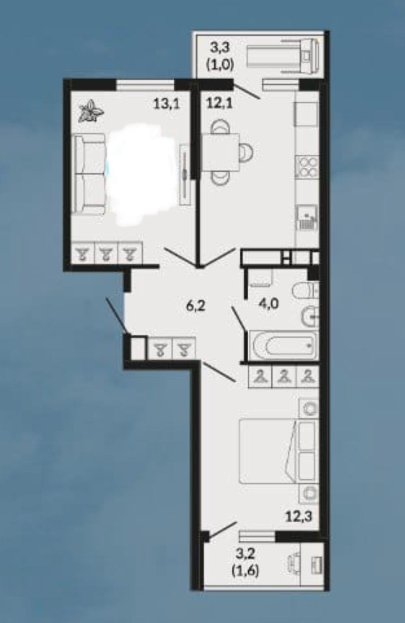 Общая площадь 61.5 м2