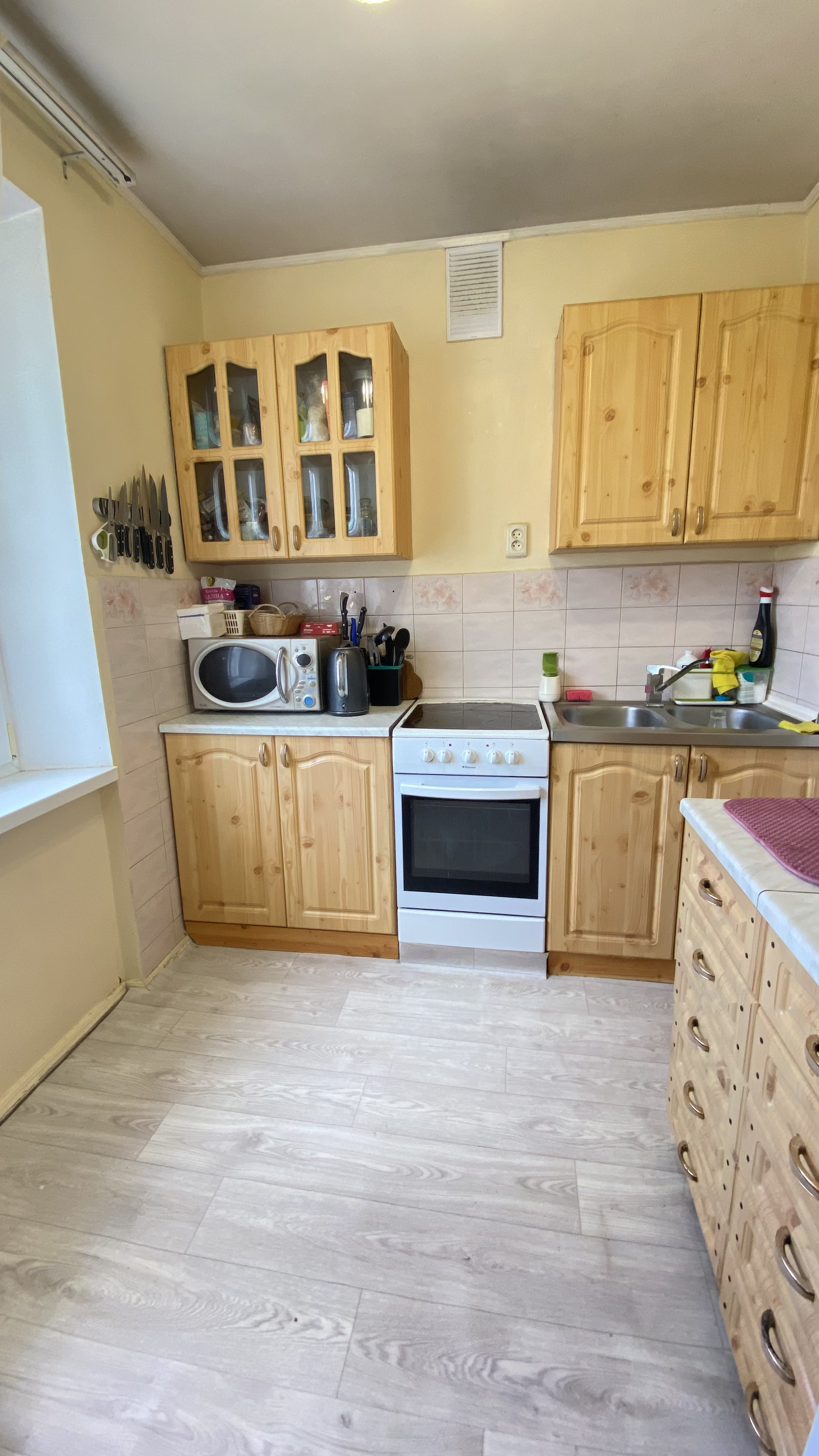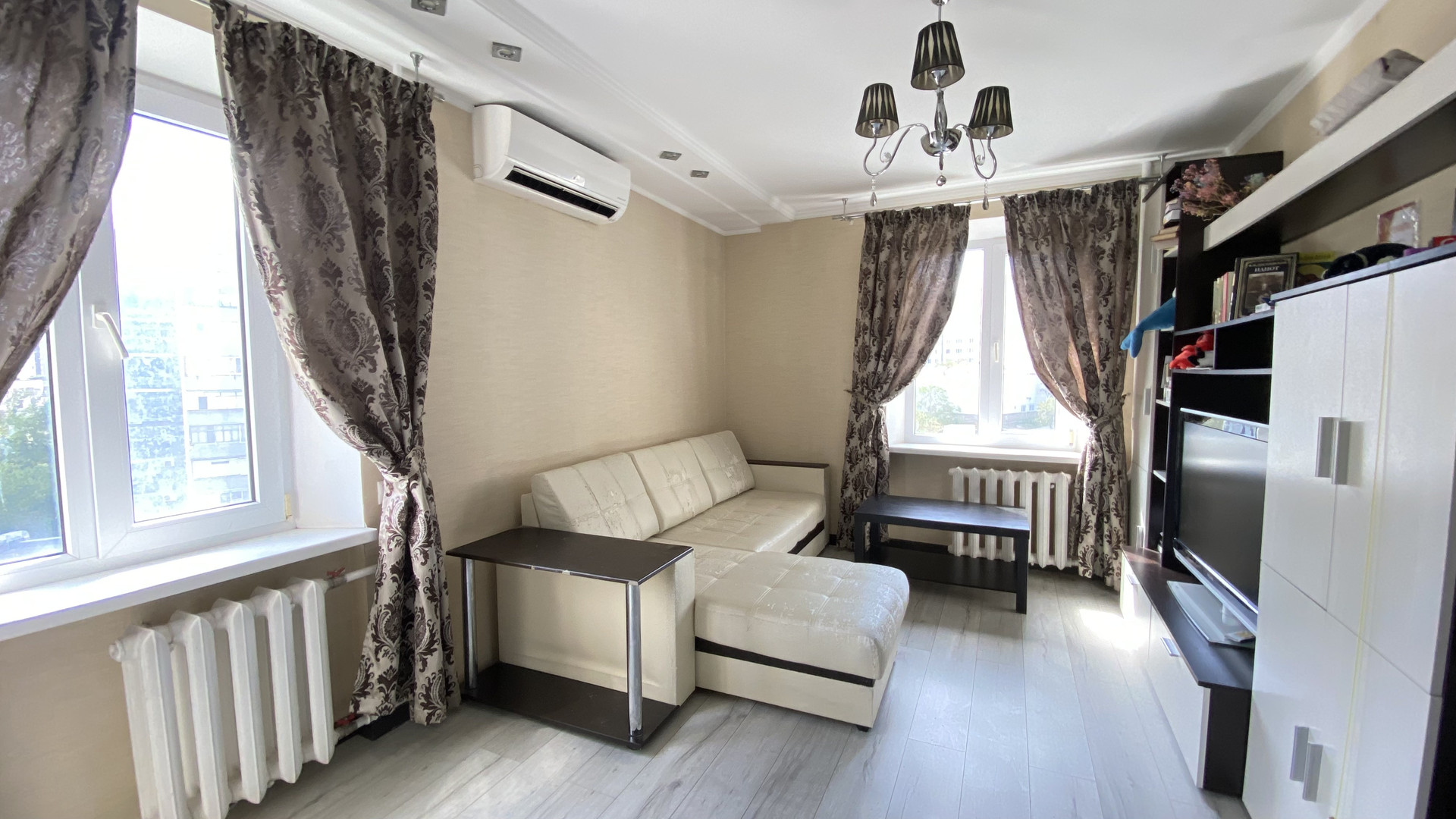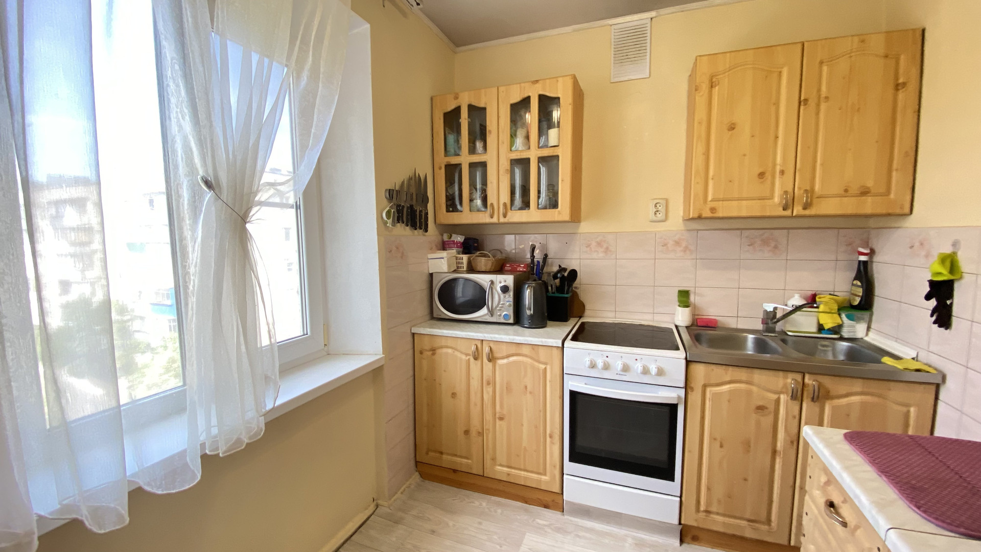 Жилая площадь составляет 50.6 квадратных метров, а кухня — 6.6 квадратных метров. В квартире выполнен косметический ремонт, что позволит новым владельцам сразу же заселиться без дополнительных вложений. Также имеется два балкона, откуда открывается прекрасный вид на двор и улицу.
