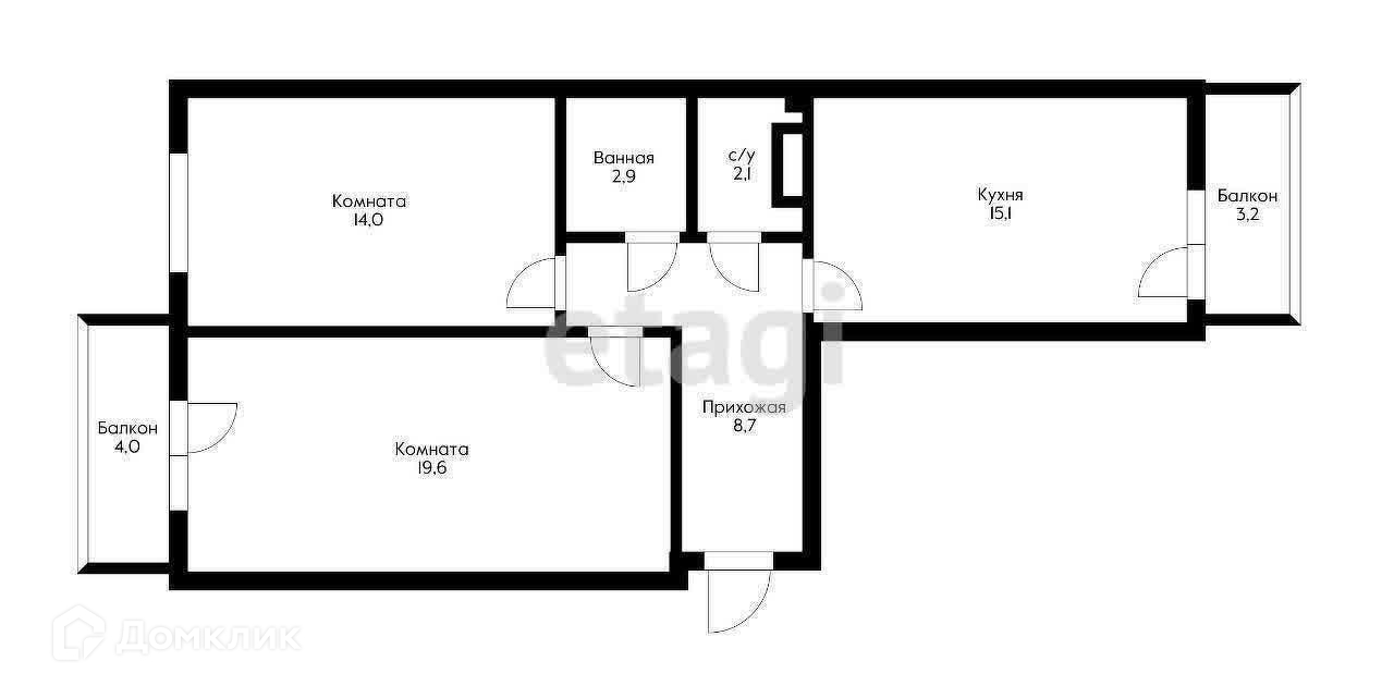 Общая площадь 62.6 м2