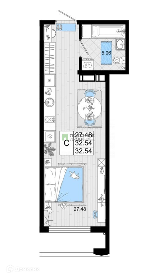 Общая площадь 32.54 м2
