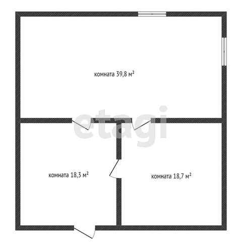 Площадь 76,8 кв. м, 3 комнаты (39,8 кв. м + 18,3 кв. м + 18,7 кв. м). Высота потолков 2,25 м.