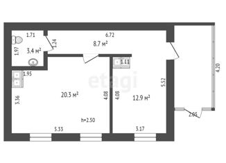 Общая площадь: 33.4 м2