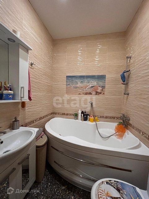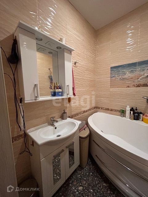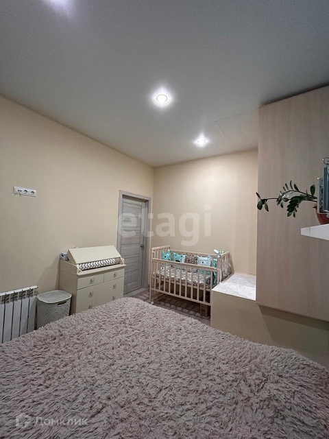 На 1 этаже - теплый пол, совмещенный санузел-душевая, кухня-гостиная, кладовка (туда заведена стиральная машина, можно переставить в санузел). Кухня-гостиная отделена от входа большим вместительным шкафом. На 2-й этаж ведет комфортная лестница с подсветкой. На 2 этаже радиаторы в каждой комнате, в ванной электрический подогрев пола. 2 спальни + санузел с большой ванной.