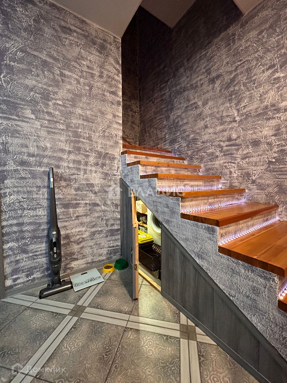 На 2-й этаж ведет комфортная лестница с подсветкой