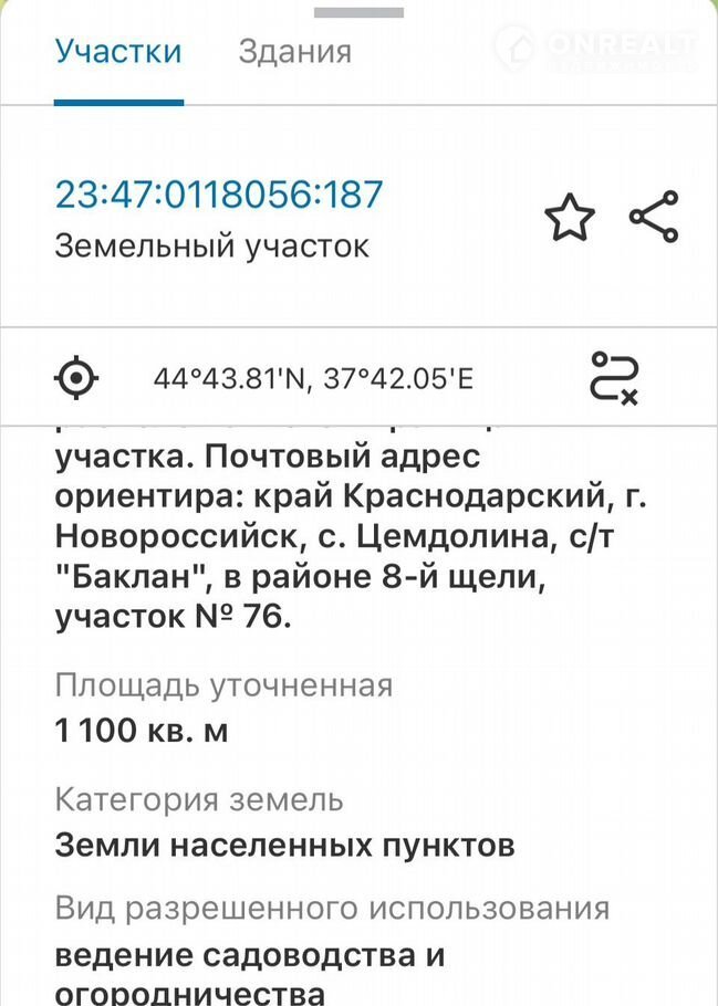 Участок в СНТ, 11 сот. на продажу в Новороссийске, СНТ Баклан, 12