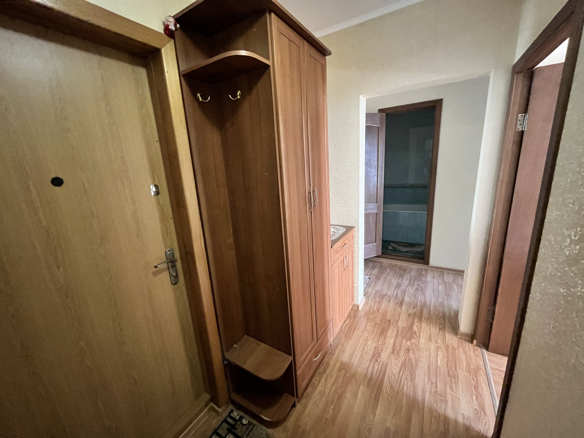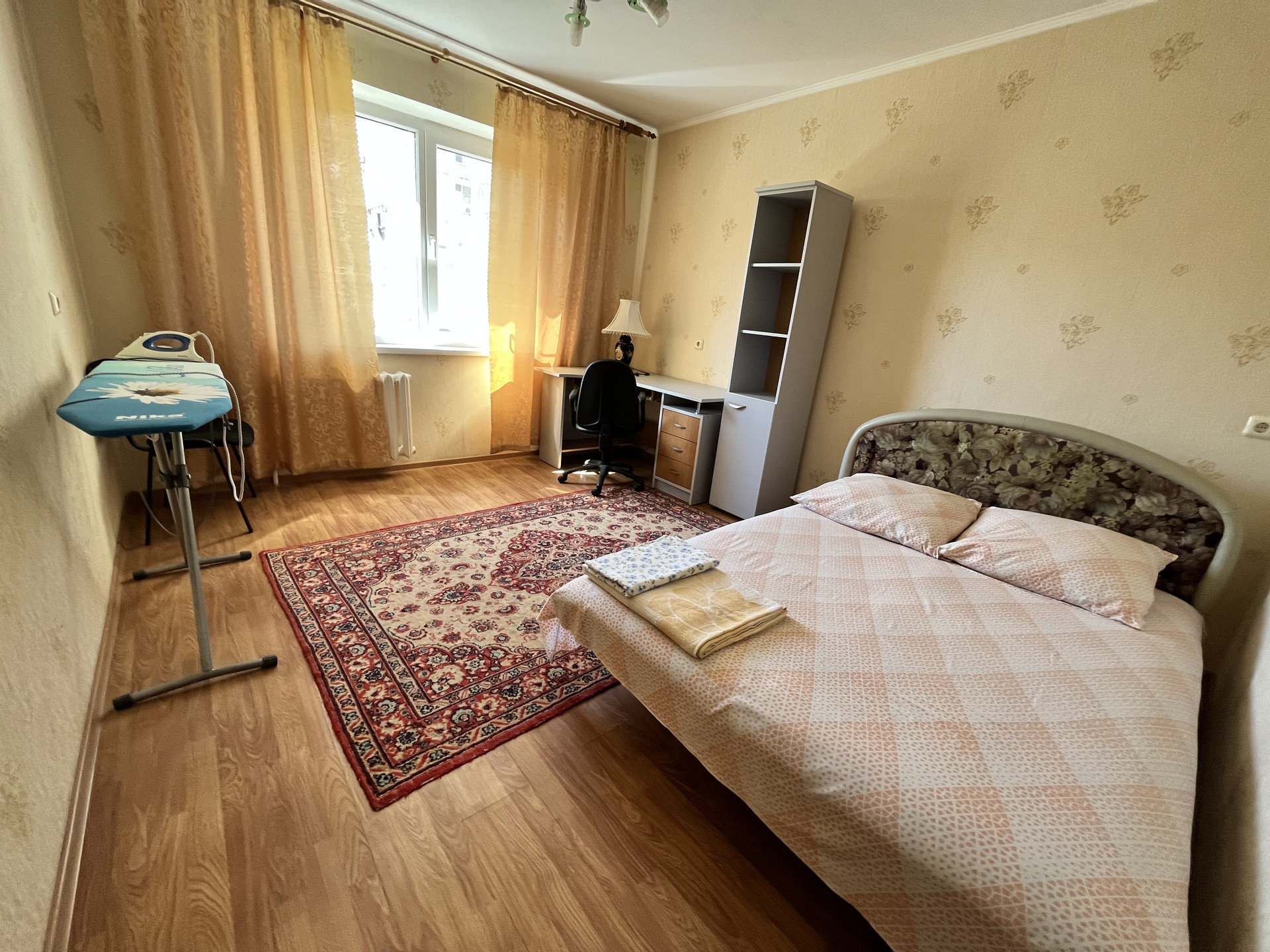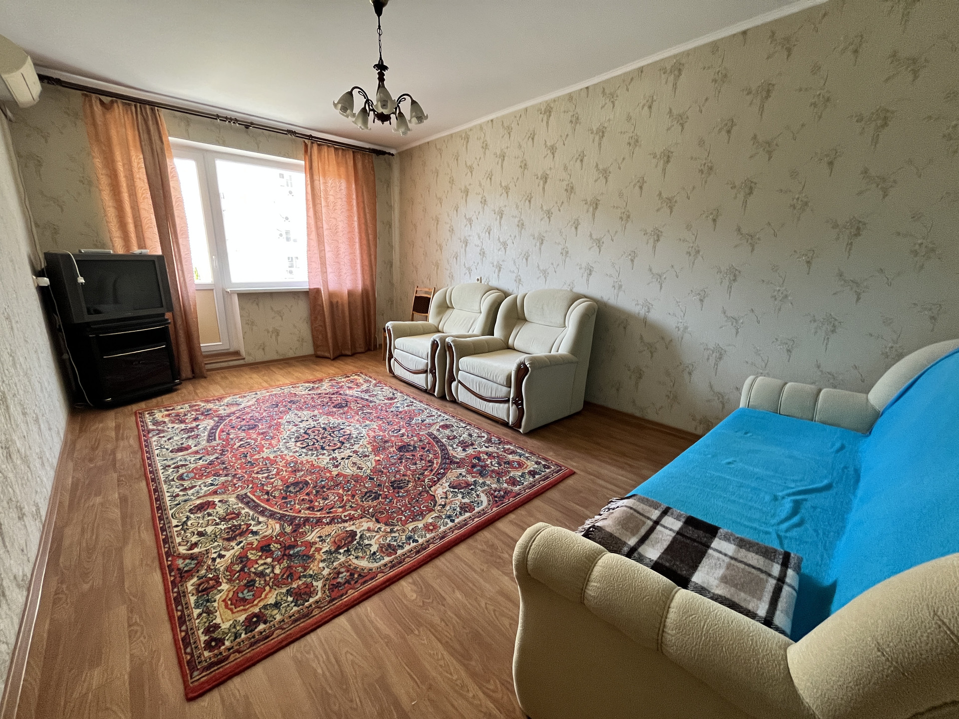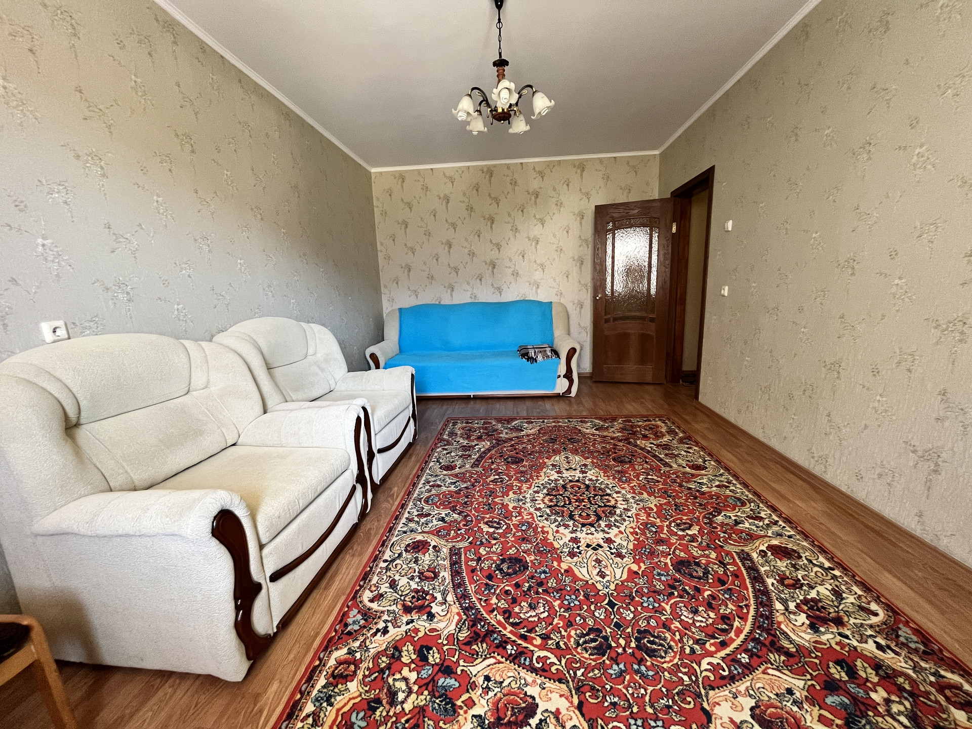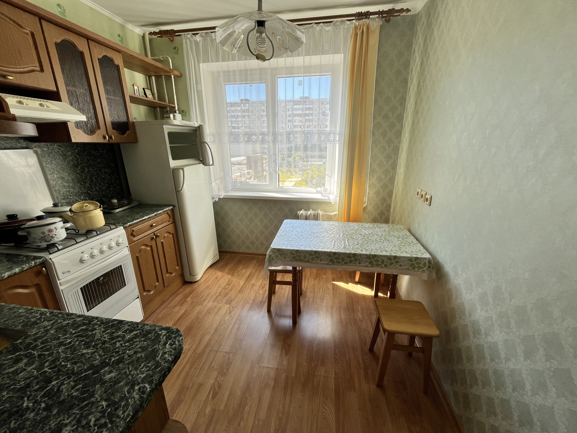 Мебель: кухонный гарнитур, кухонный стол, табуретки, раскладной диван, два раскладных кресла, двуспальная кровать, письменный стол, офисный стул, пенал, прихожая, тумба ТВ.