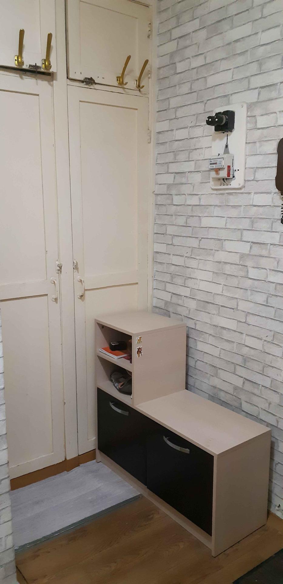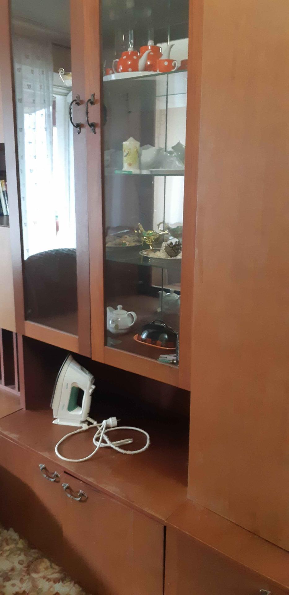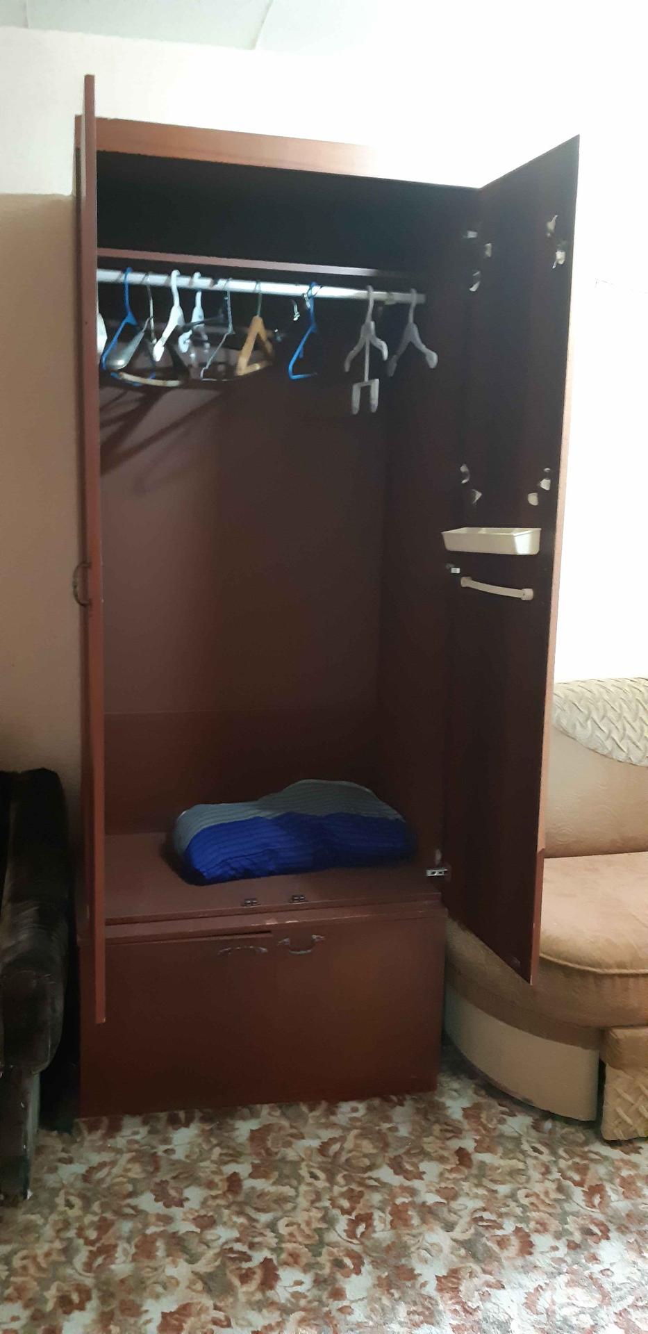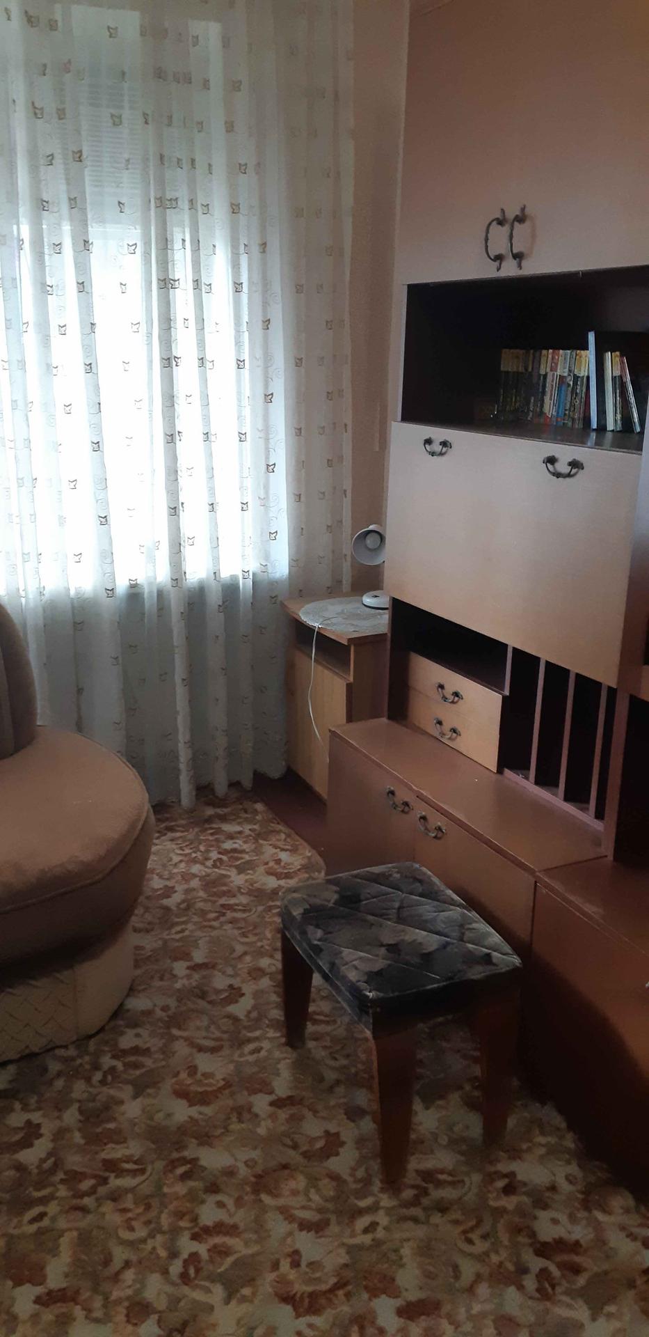 Ремонт в квартире  скромный, в комнате  имеются 2 спальных места - диваны, платяной вместительный шкаф, стенка, стол, стул, пуфик.