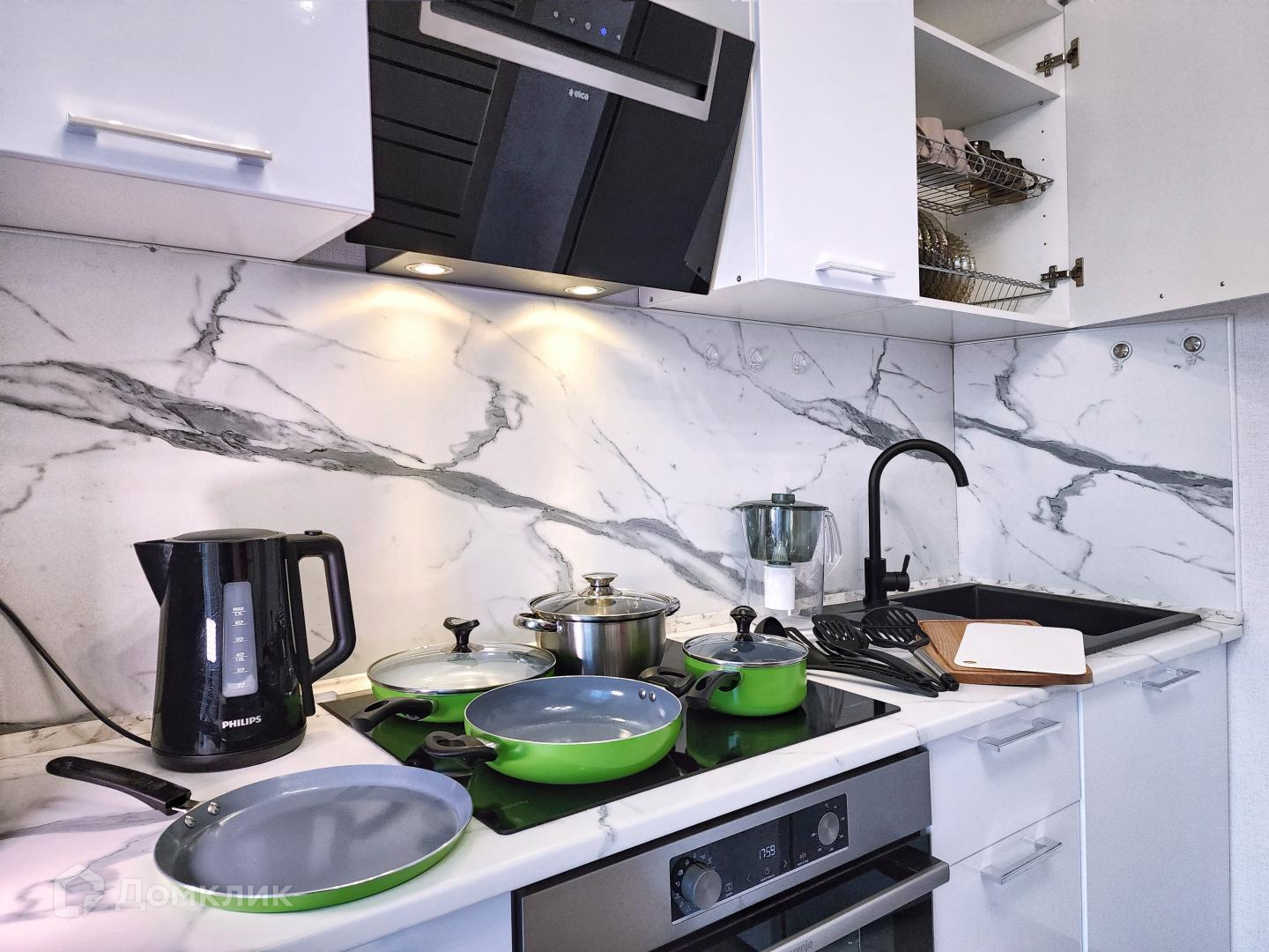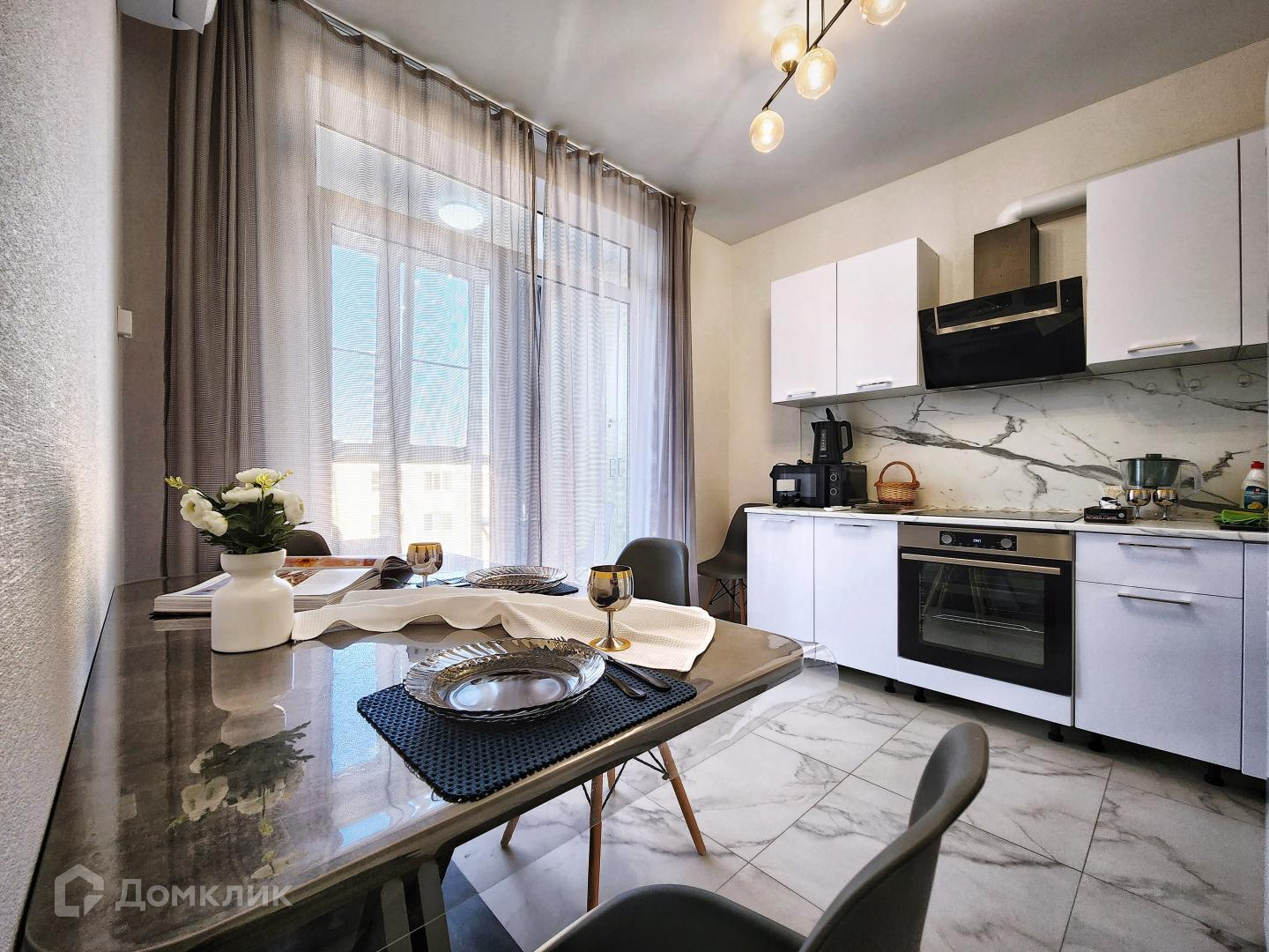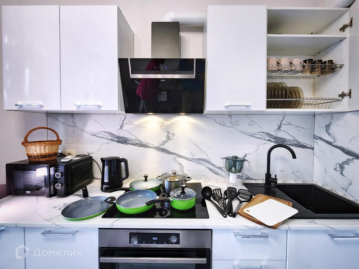 ✅ полностью оборудованная посудой и техникой кухня: плита, СВЧ, чайник, духовой шкаф.