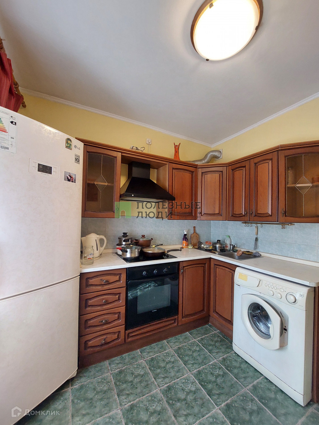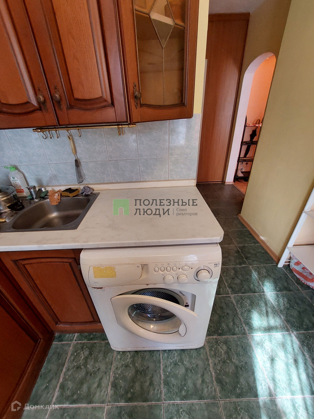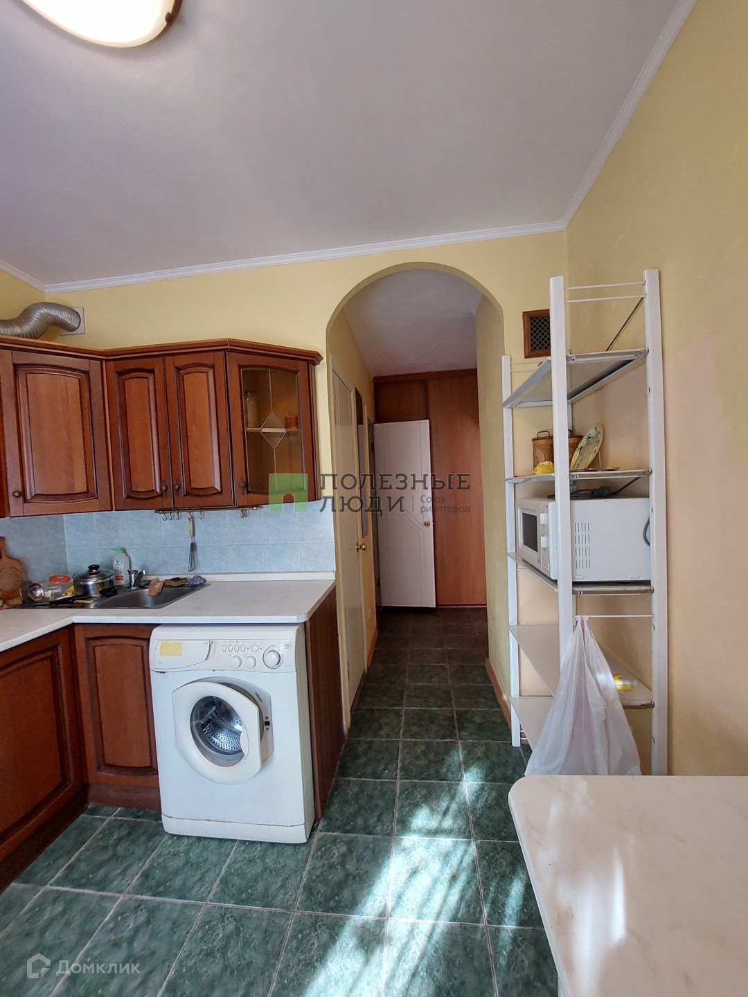 - кухонный гарнитур,  плита, холодильник,   стол, стиральная машина в санузле.