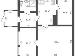 Общая площадь: 42.8 м2