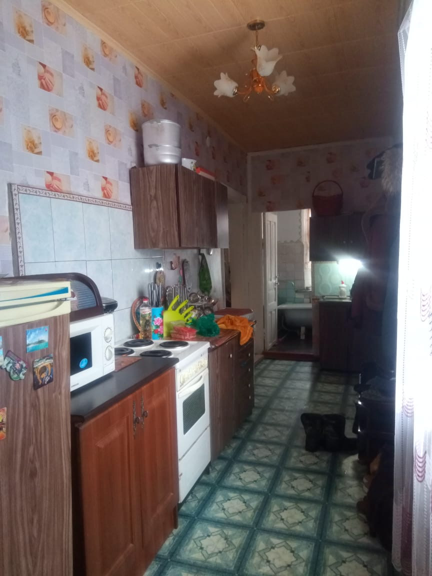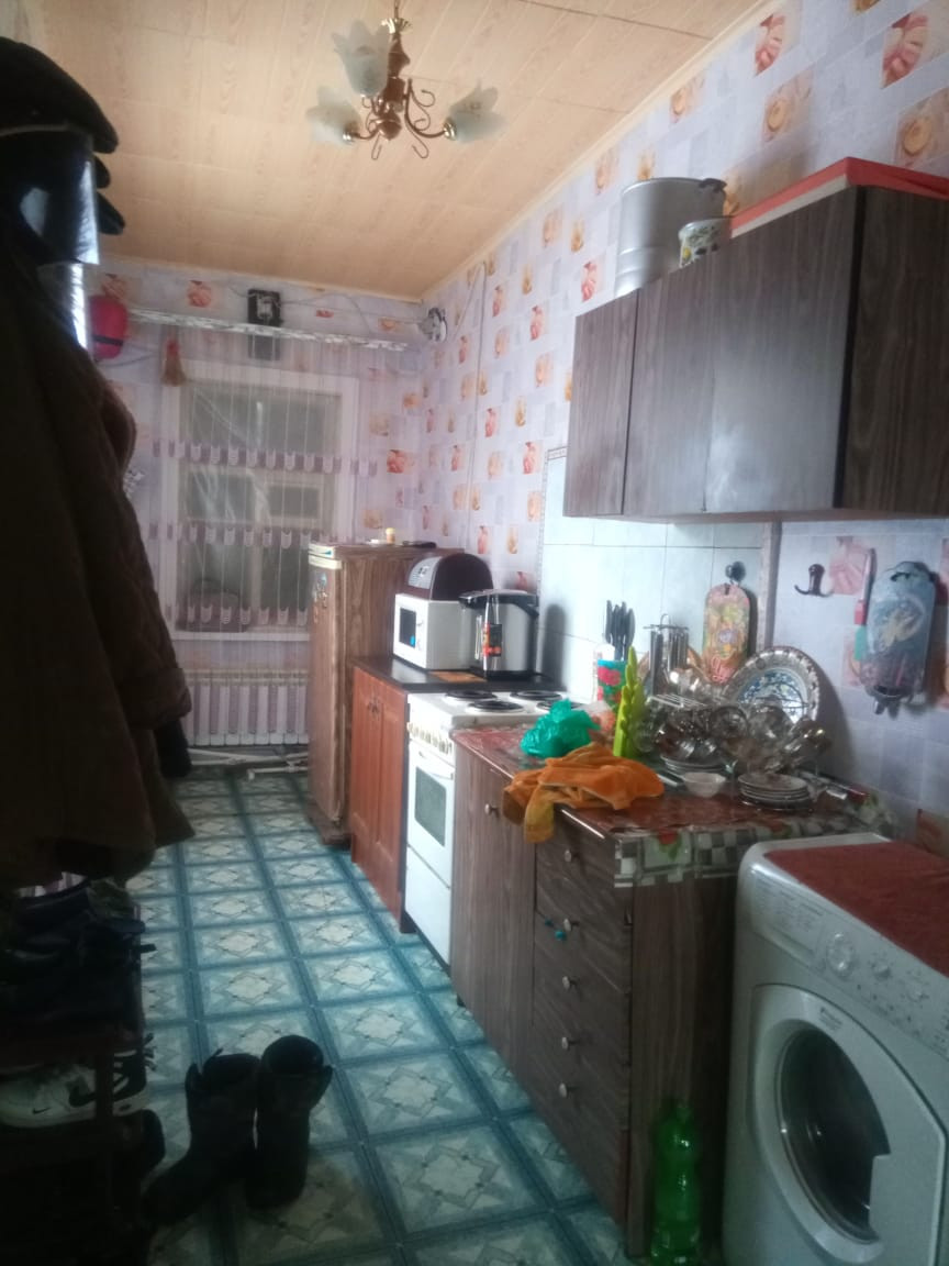 Общая площадь 61 кв м. Отопление электрическое( газ по меже) .Дом  большой ,хорошие просторные комнаты.Сделан косметический ремонт.В доме 2 спальни ,зал.гостинная,ванная, коридор.Высокие потолки 3.1м. В/у совмещенный с/у.Остается кухня,стиральная машина,бойлер.Хоз.постройки(2 сарая/погреб).Есть хороший гараж.