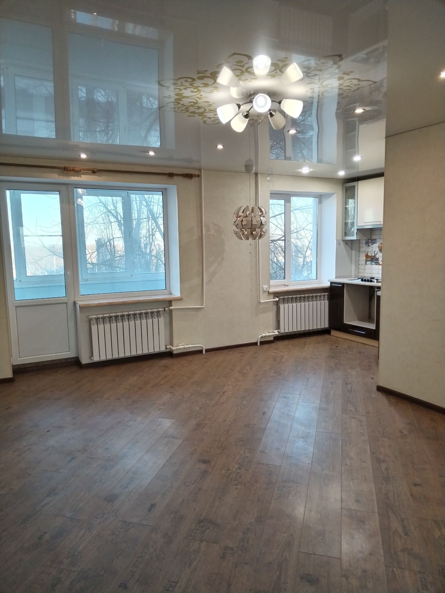 Продаётся квартира-студия с хорошим ремонтом. Перепланировка узаконена. На полу стяжка и ламинат, в коридоре и ванной плитка, стены выравнивались, проводка и сантехника поменяны. Кухня со встраиваемой газовой панелью и вытяжкой. Отопление центральное. Горячая вода с бойлера(в прошлом году меняли). Балкон полностью остеклен, имеет 4 створки, что облегчает мытье стекл. Внутри балкон обшит пластиком, снаружи металлопрофилем.