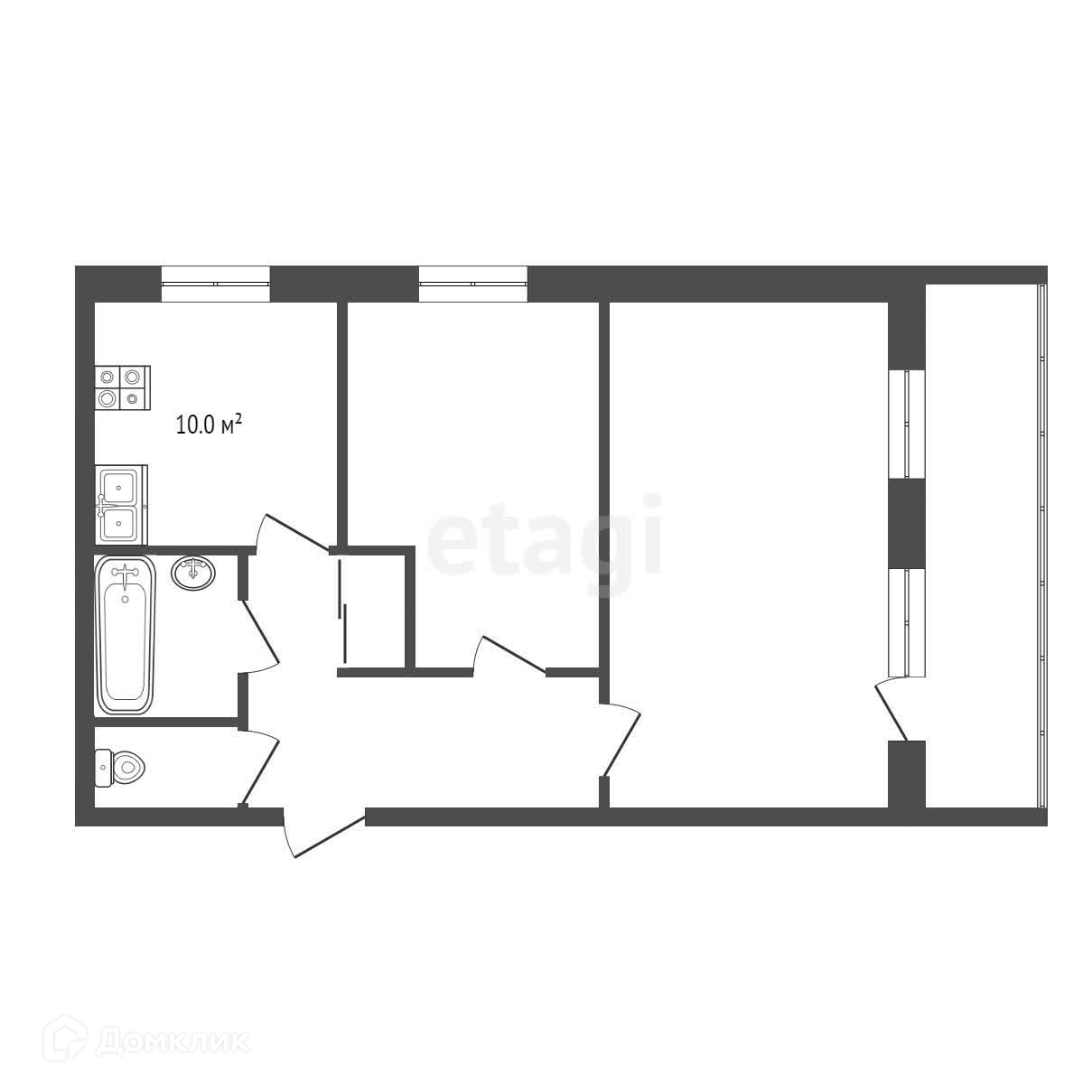 2-комнатная квартира, 48.8 м2, этаж 2 / 4, на продажу в Новошахтинске, улица Славы, 30