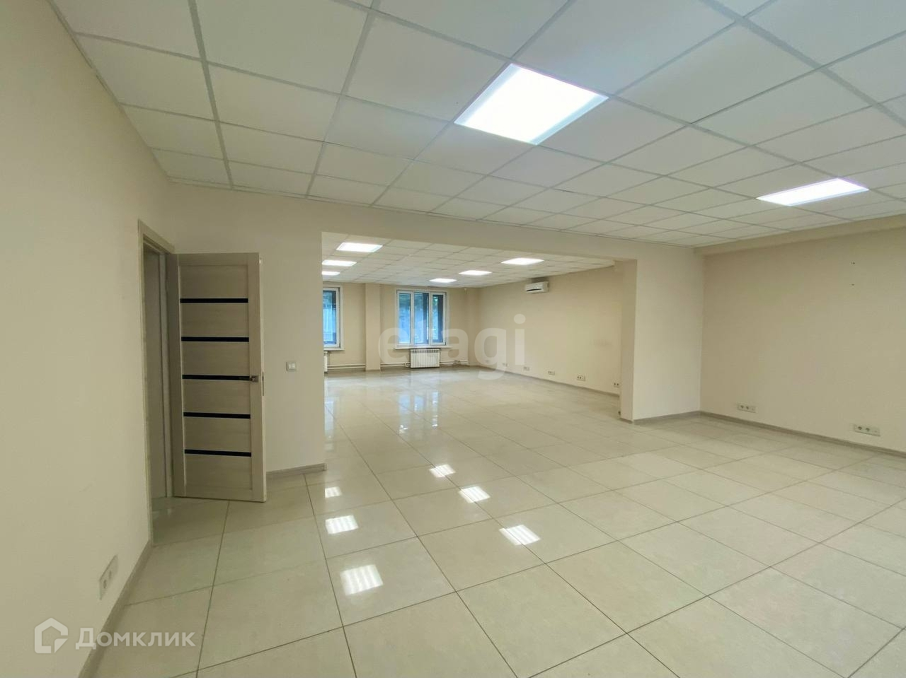 Потолок армстронг, стены под покраску, на полу керамическая плитка. Ухоженный санузел на две кабинки. В каждой комнате установлены кондиционеры.