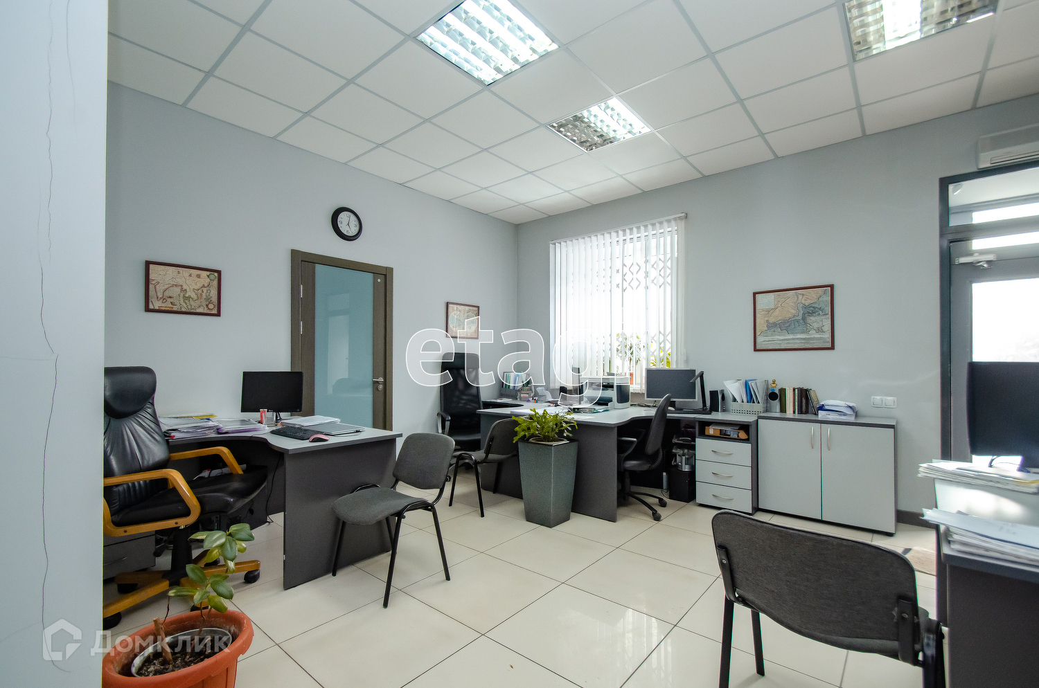 Офис имеет 2 комнаты , в каждой свой туалет.