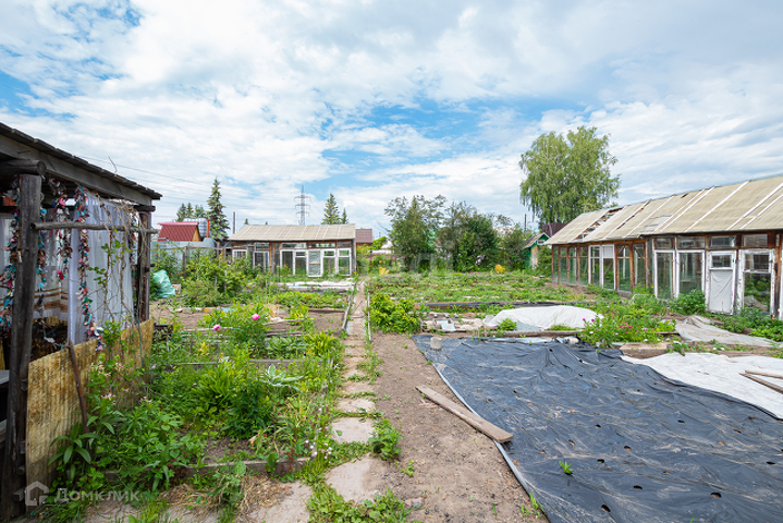 На участке баня, 3 теплицы, многолетние цветы, малина, смородина, крыжовник, жимолость, ранетка, облепиха, ирга, клубника.