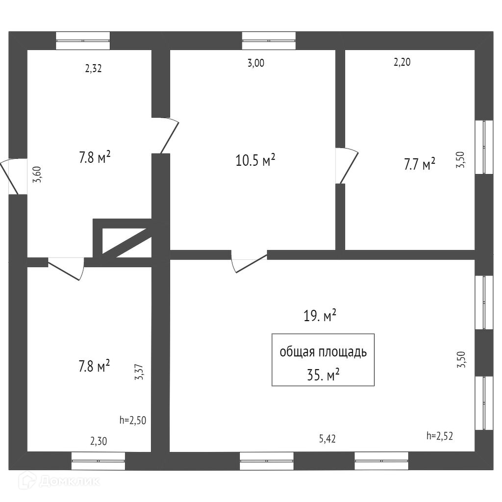 Общая площадь 52 м2
