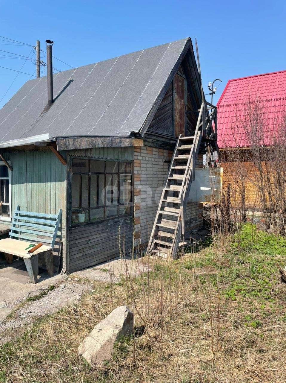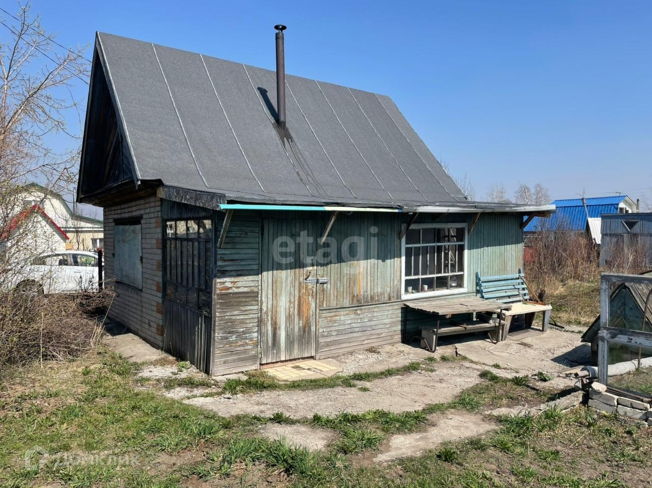 На участке парковка на две машины. Номер в базе: 8661132. Район: Строитель НСТ(Первомайский район).
