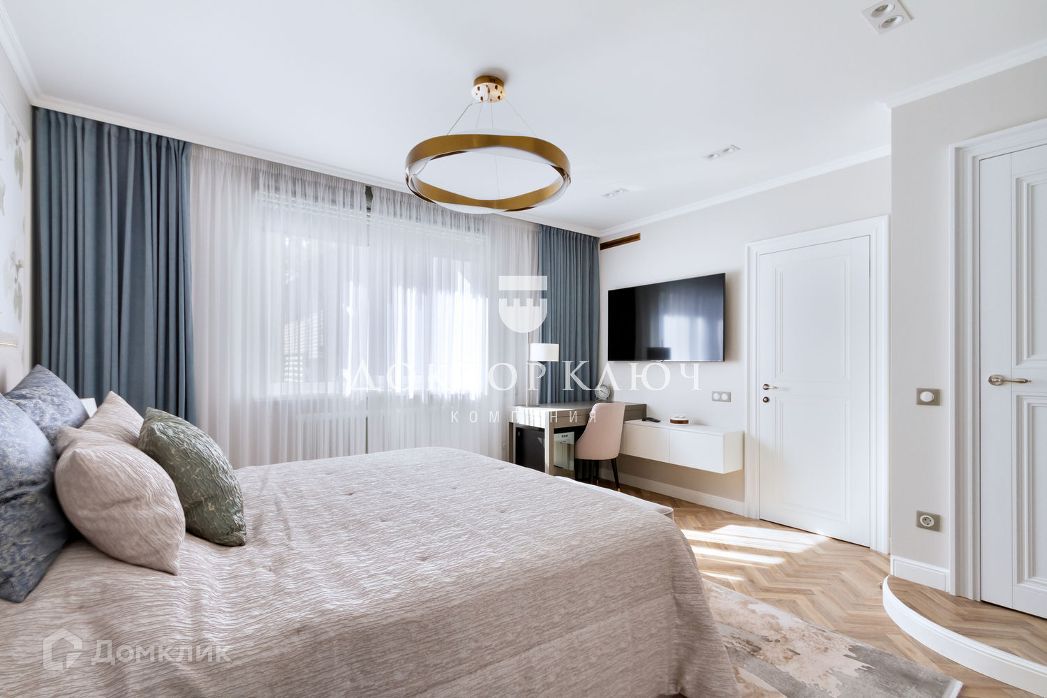 - В доме три спальни каждая со своим санузлом, кухня-гостиная,гардеробная,