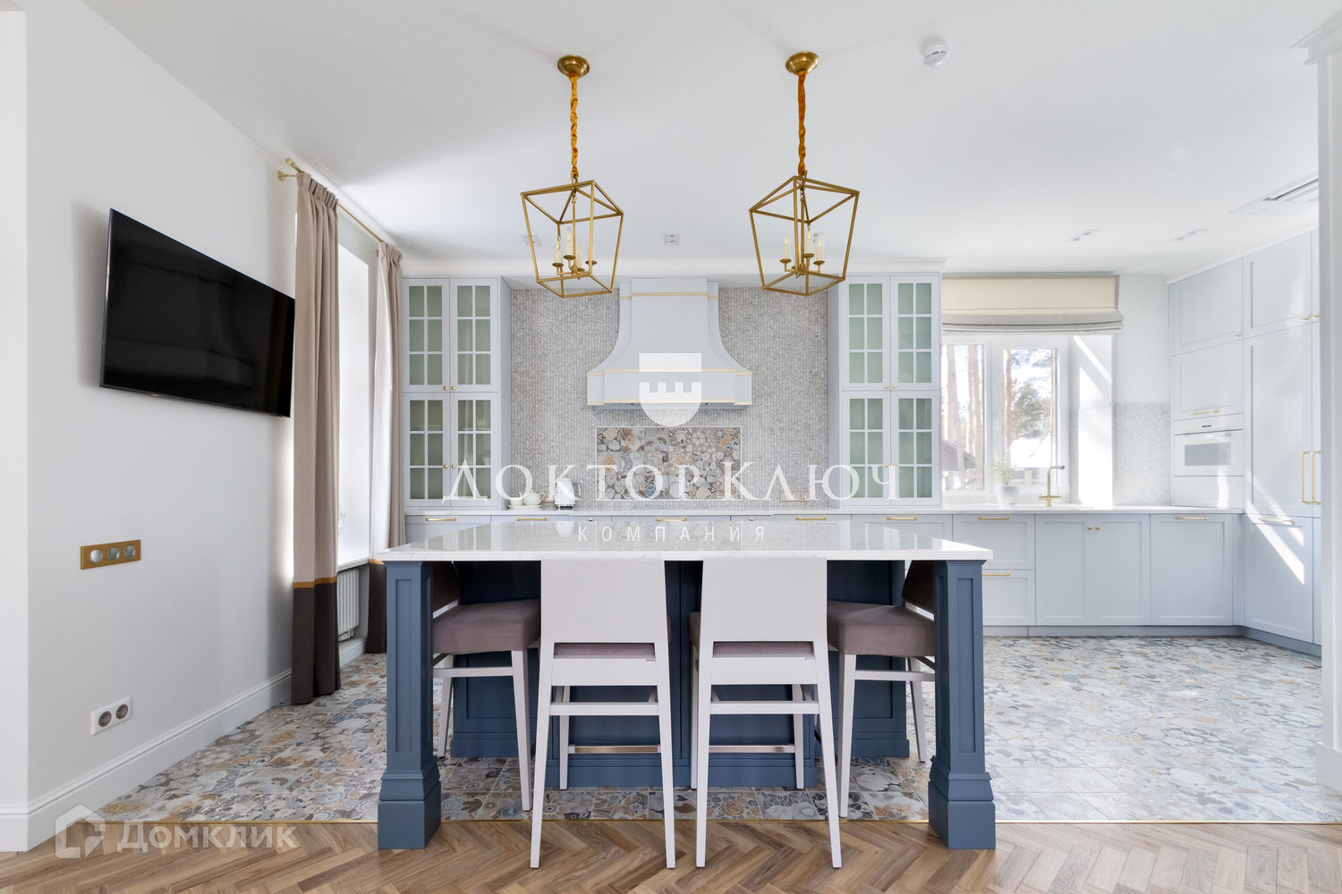 сделан новый дорогостоящий дизайнерский ремонт. Материал стен коттеджа кирпич.