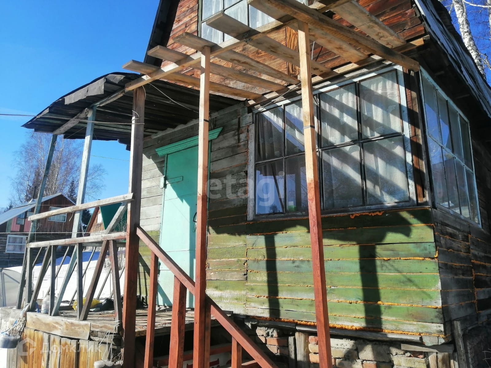 На участке имеется двухэтажный летний дом, баня, теплицы. Участок огорожен металлической сеткой. Рядом с домом залит новый фундамент, на котором можно построить круглогодичный дом, новую баню из бруса или беседку. Участок ухожен и регулярно обрабатывался. Один взрослый собственник, быстрый выход на сделку.