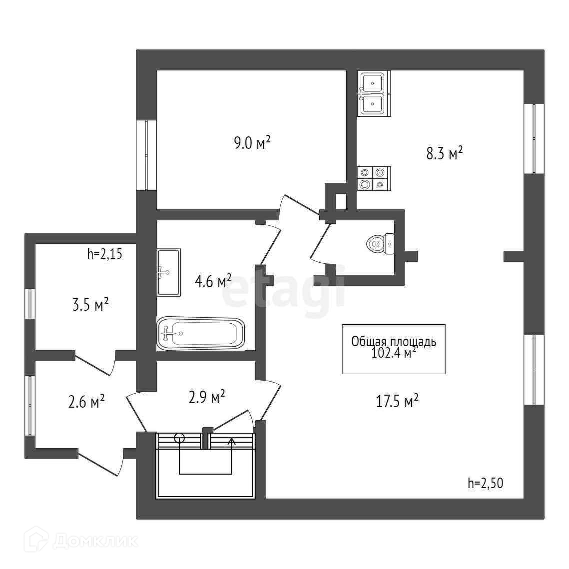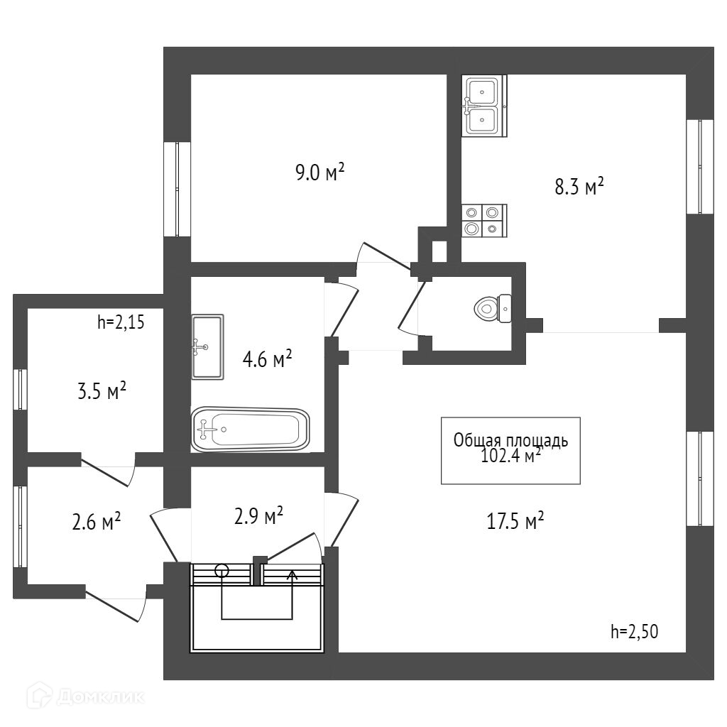 Общая площадь 102.4 м2