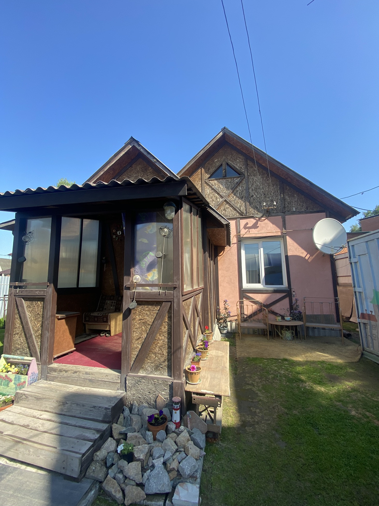 Дом построен  в 2008 году, полностью сел на фундамент.  Фундамент ленточный , дом не гуляет .  На участке есть металический гараж для автомобиля и небольшой домик ( можно оставить как гостевой ) , так как имеет все коммуникации.