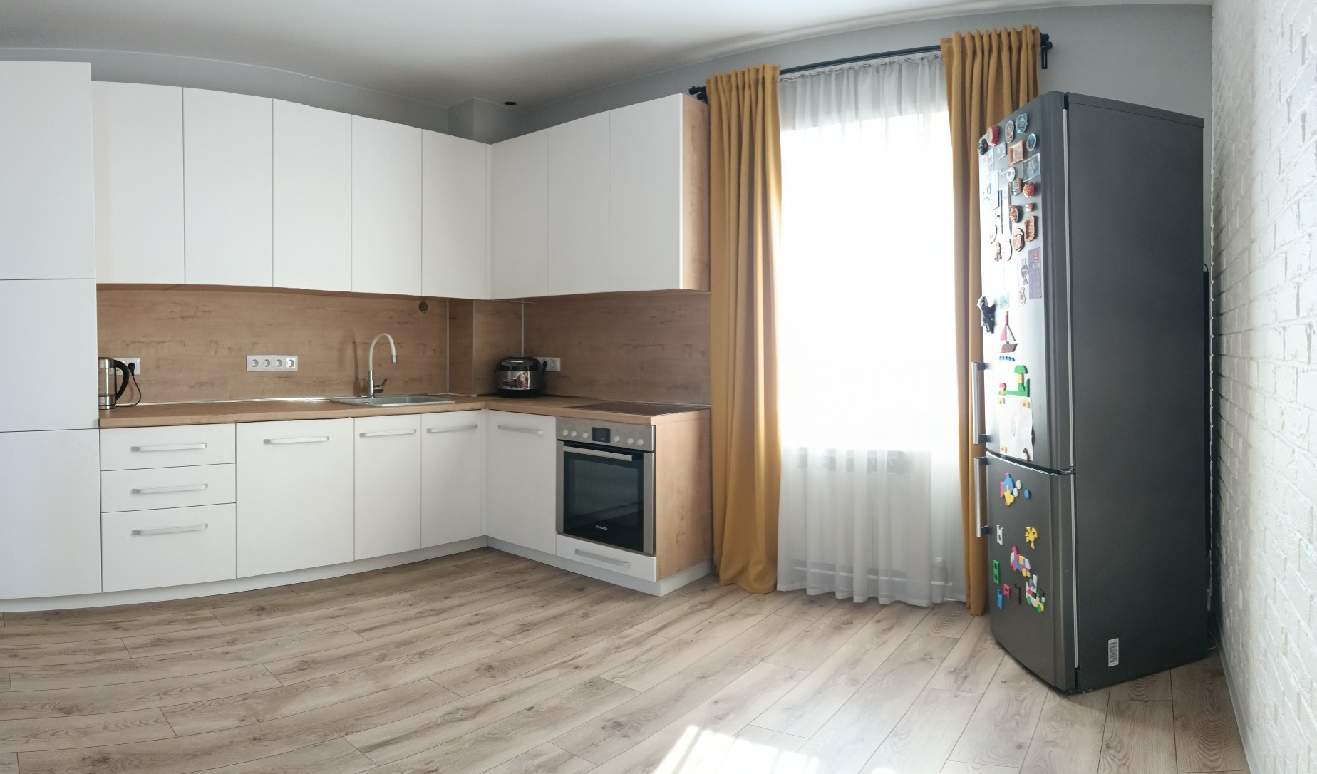 Остается кухонный гарнитур и встроенный шкаф в гостиной.