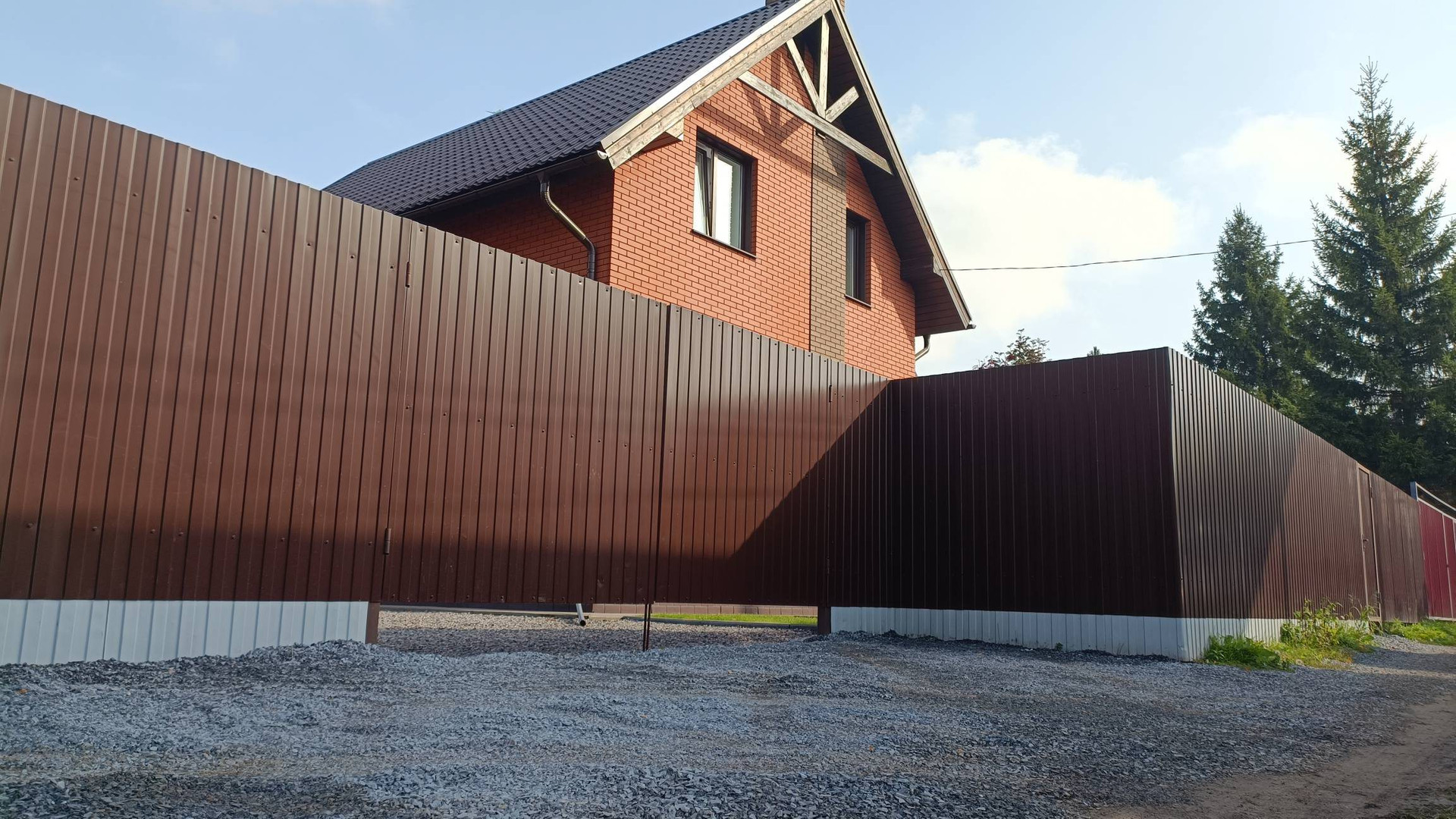 Дом возведен выше уровня дороги, что способствует отведению влаги от дома.