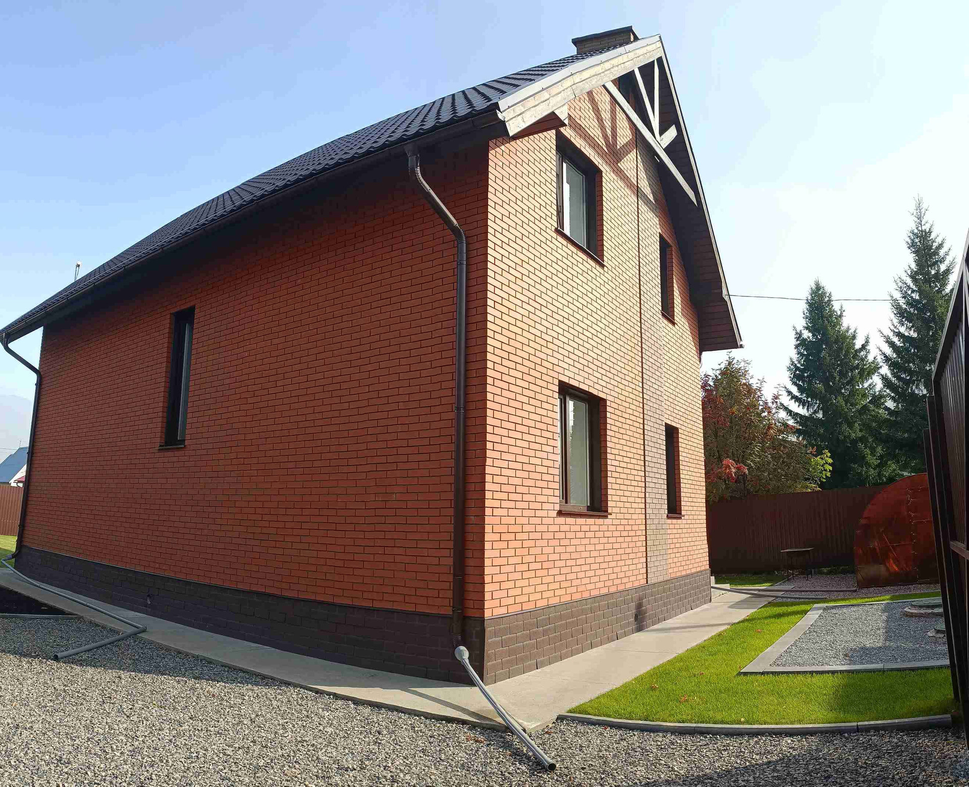 Дом построен в 2019 опытной бригадой строителей под нашим контролем, подбирали качественные решения в проекте и в материалах. Делали для себя без экономии на качестве, строили, чтобы правнукам достался :))
