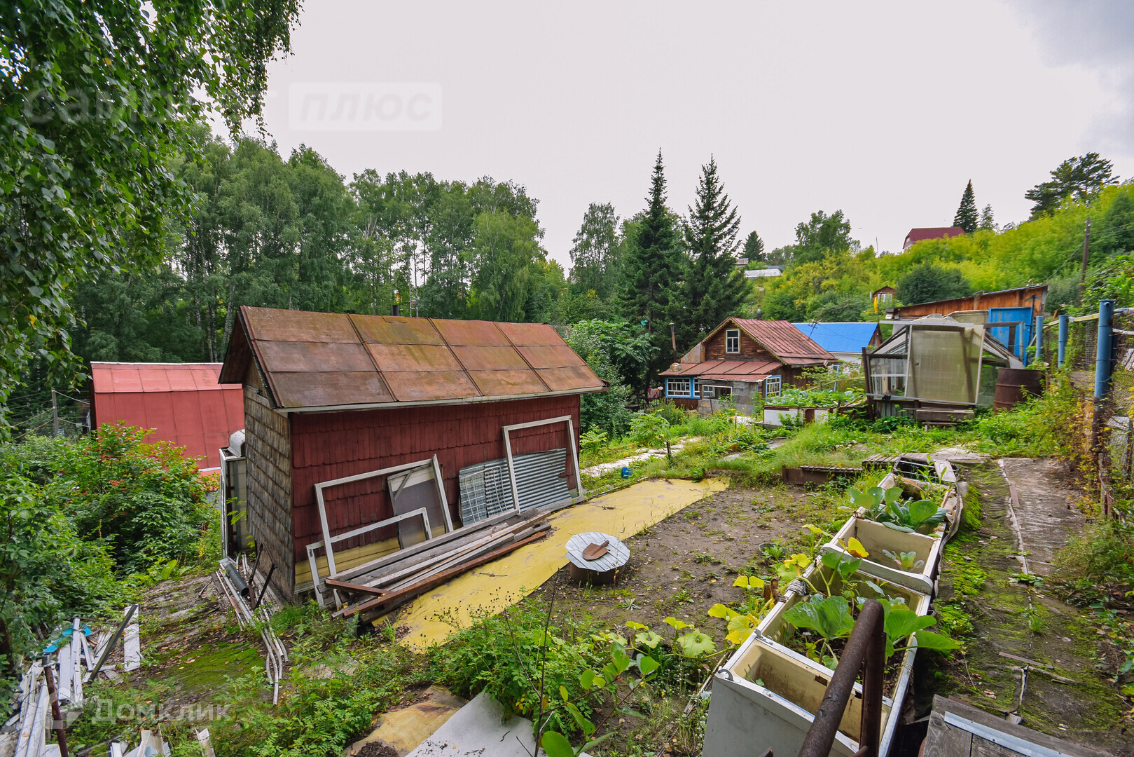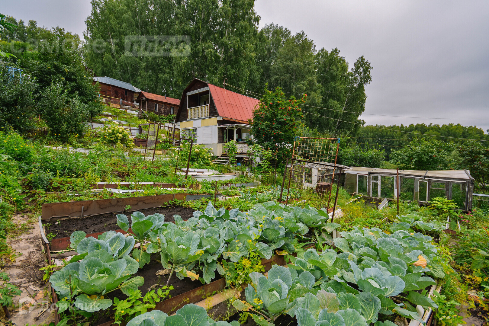 Cад- огород- дача. 2 сотки сортовой клубники, много вишневых деревьев, хорошая слива, яблони, виноград. Участок на солнечной стороне. Полудикая клубника на склонах поспевает рано. И хорошие соседи со всех сторон.