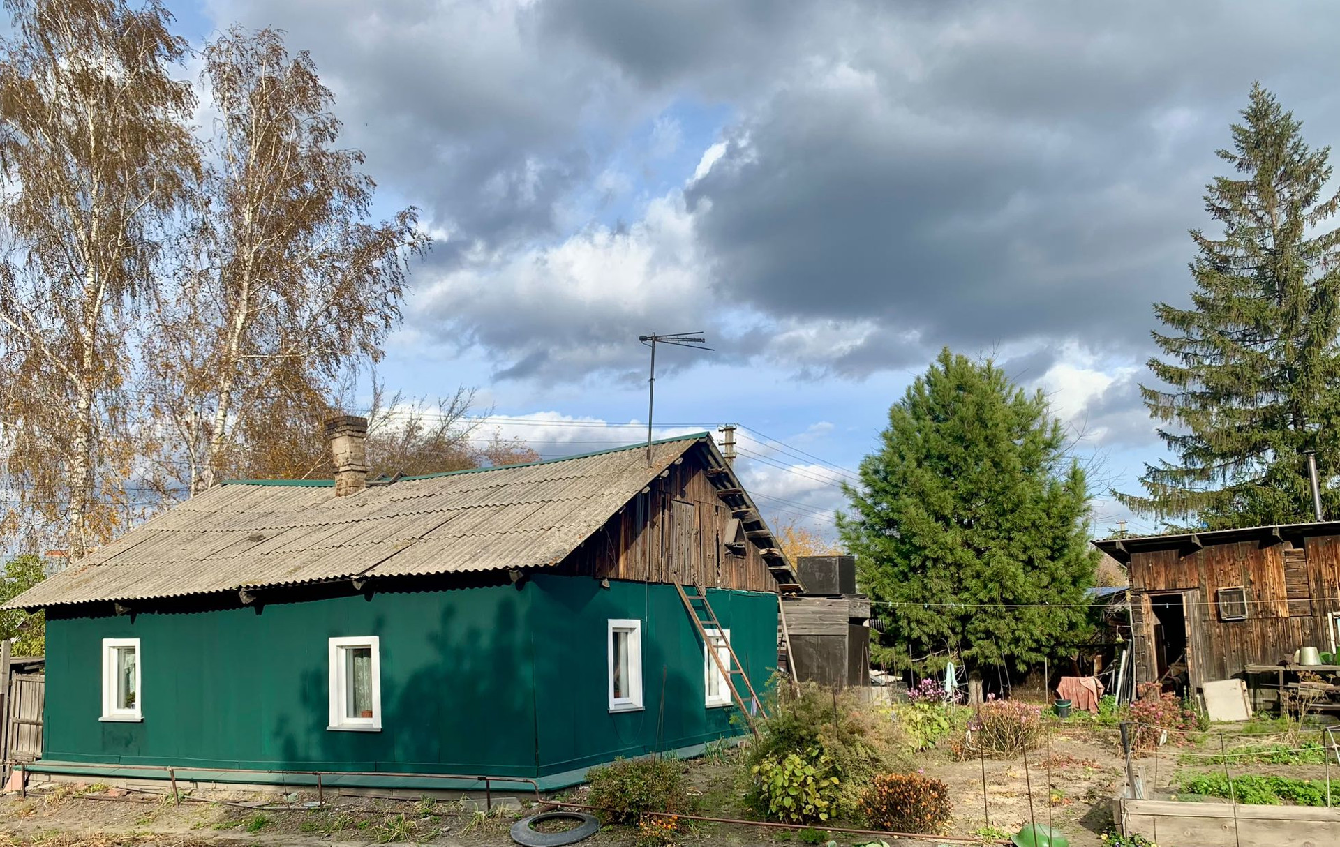 Есть пocтрoйки — хозблок сарай: дровница, углярка, склад, туалет.
