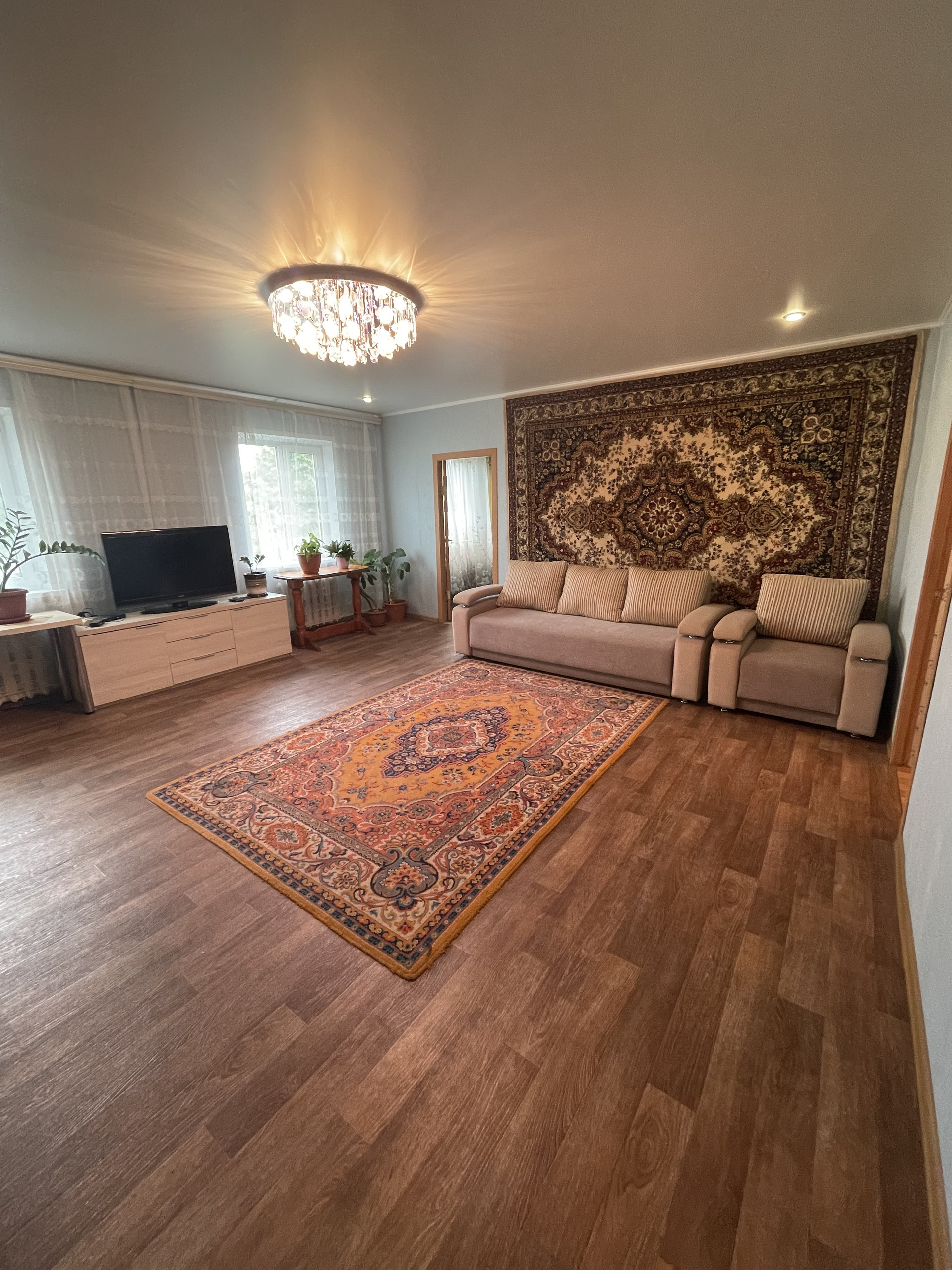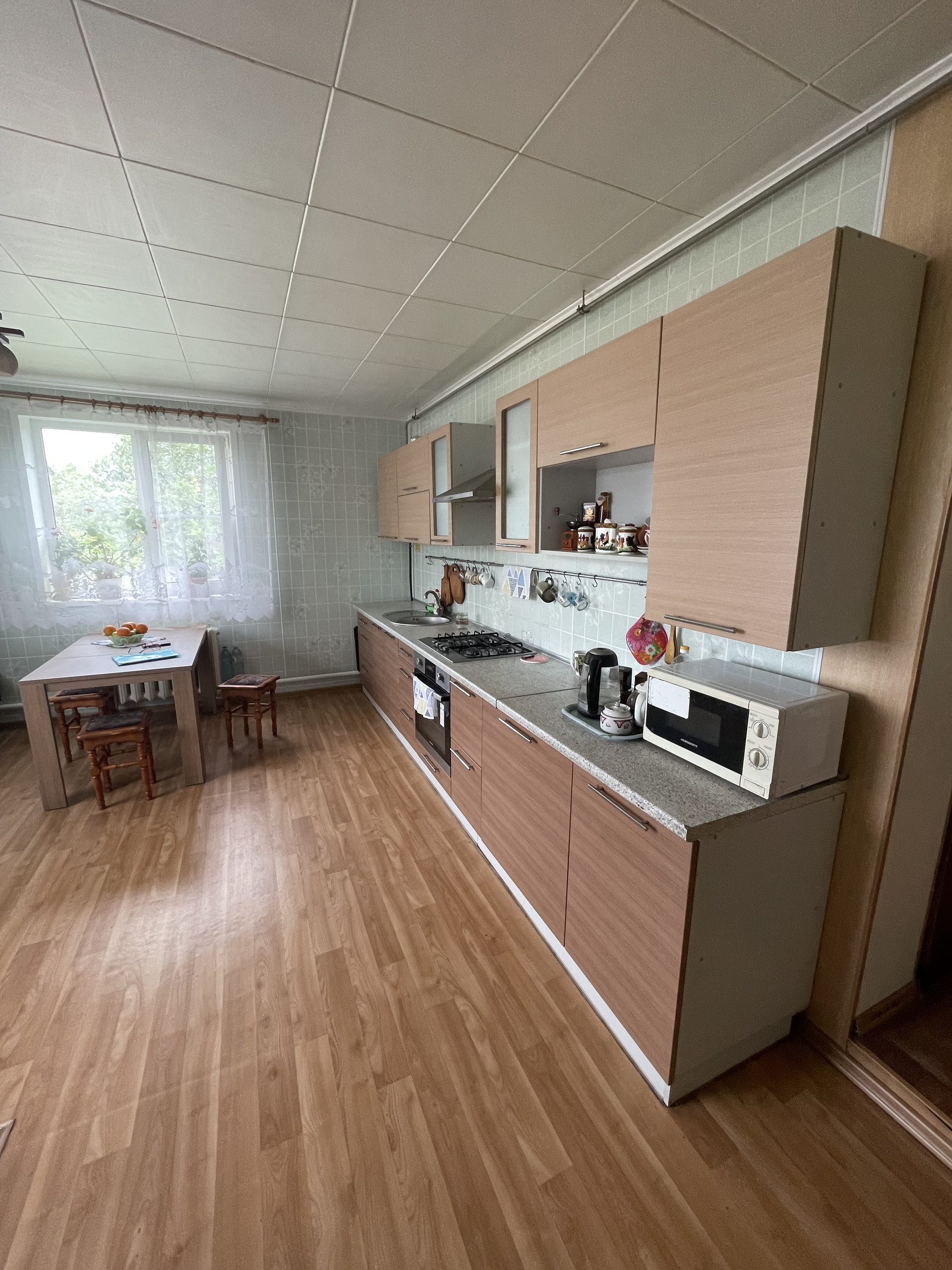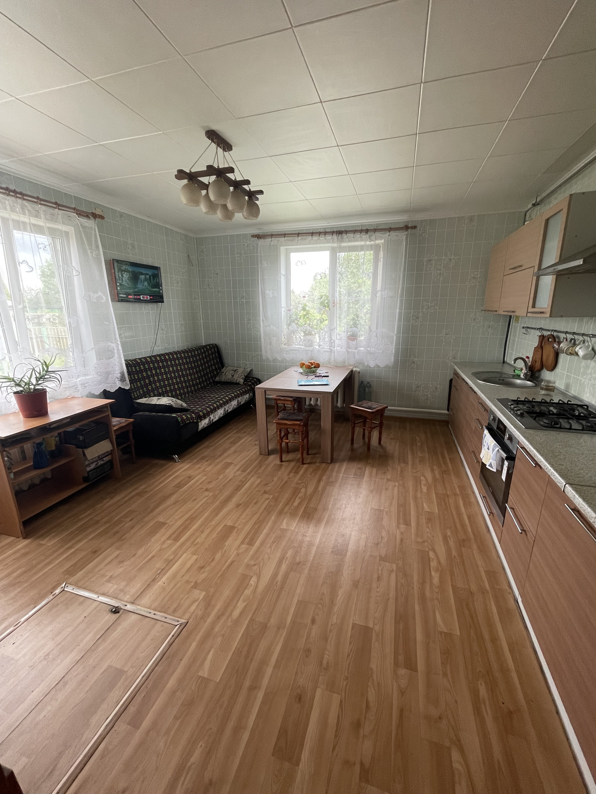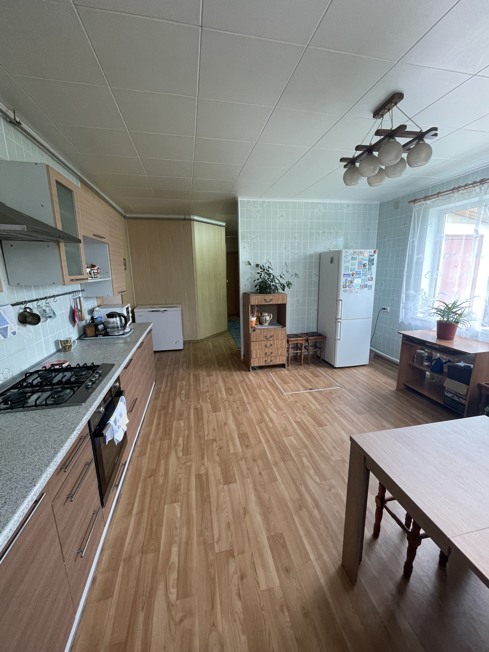 Наша половина 125 м.кв. и имеет 4 комнаты, кухню-гостиную, санузел и котельную с новым котлом.