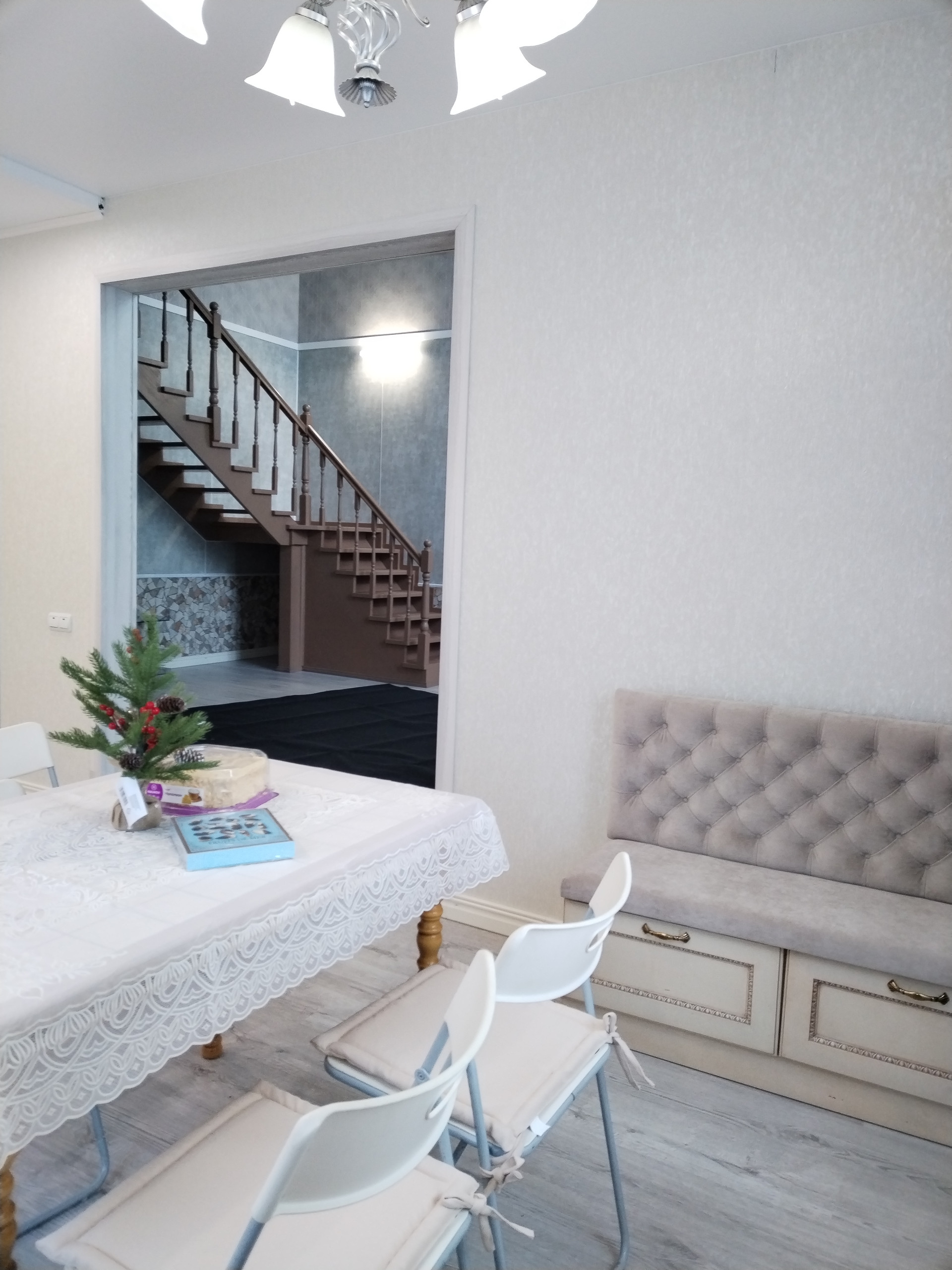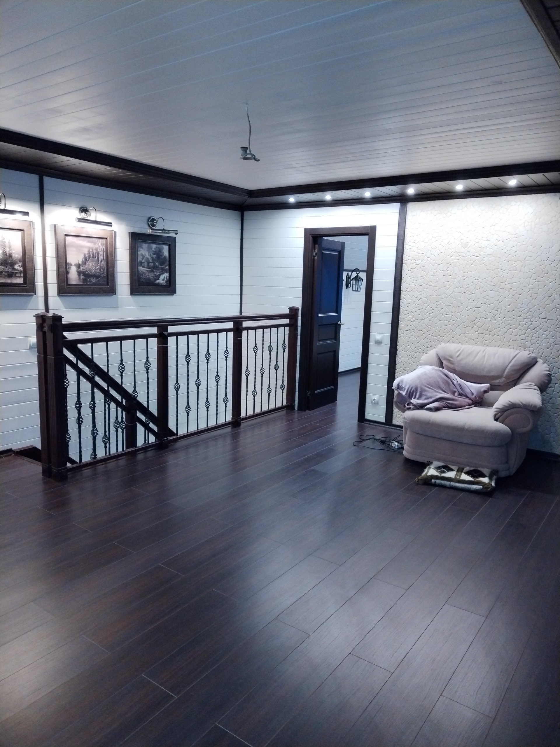 В доме санузел на каждом этаже, несколько спален, много мест для хранения, кухня - столовая, зал(второй свет), кабинет, котельная.