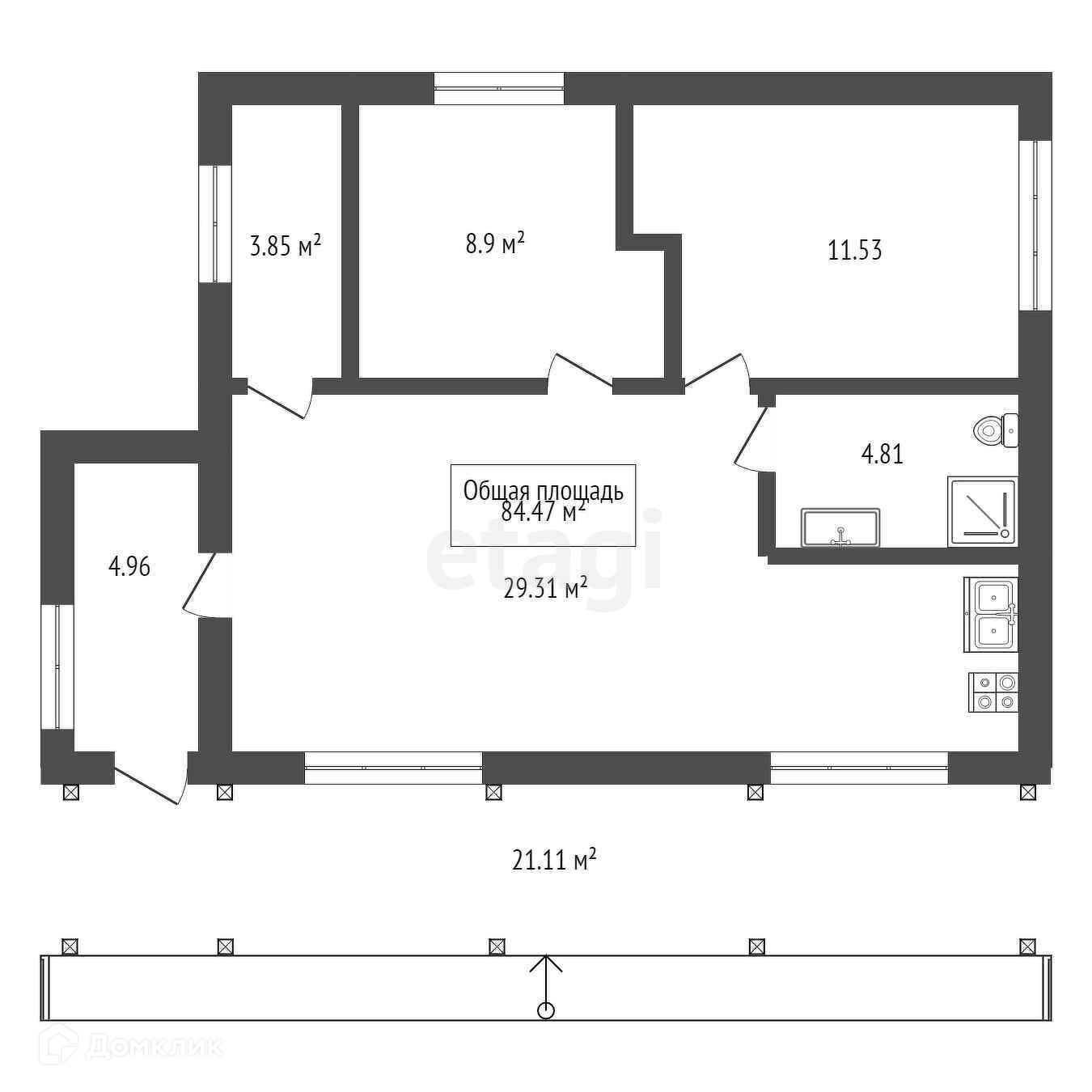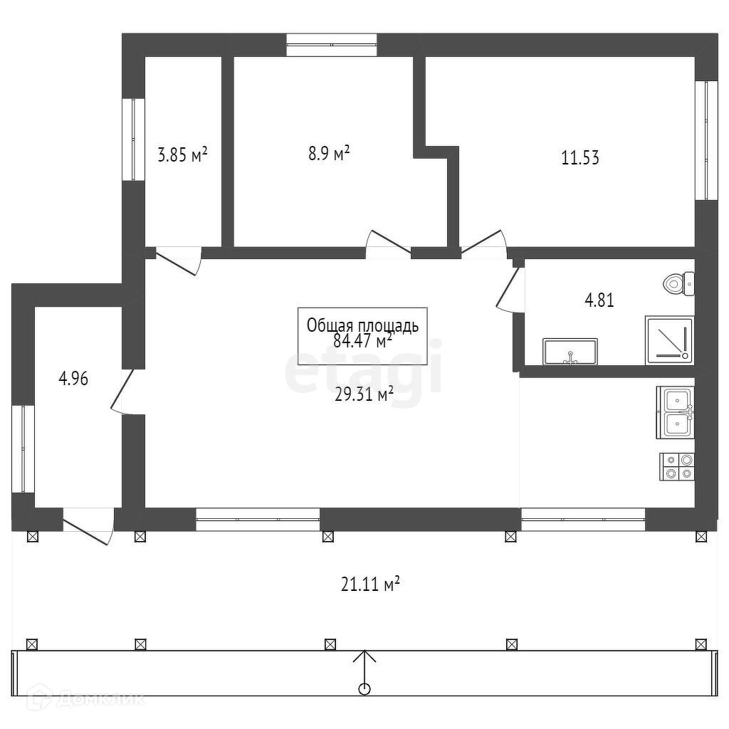 Общая площадь 85 м2