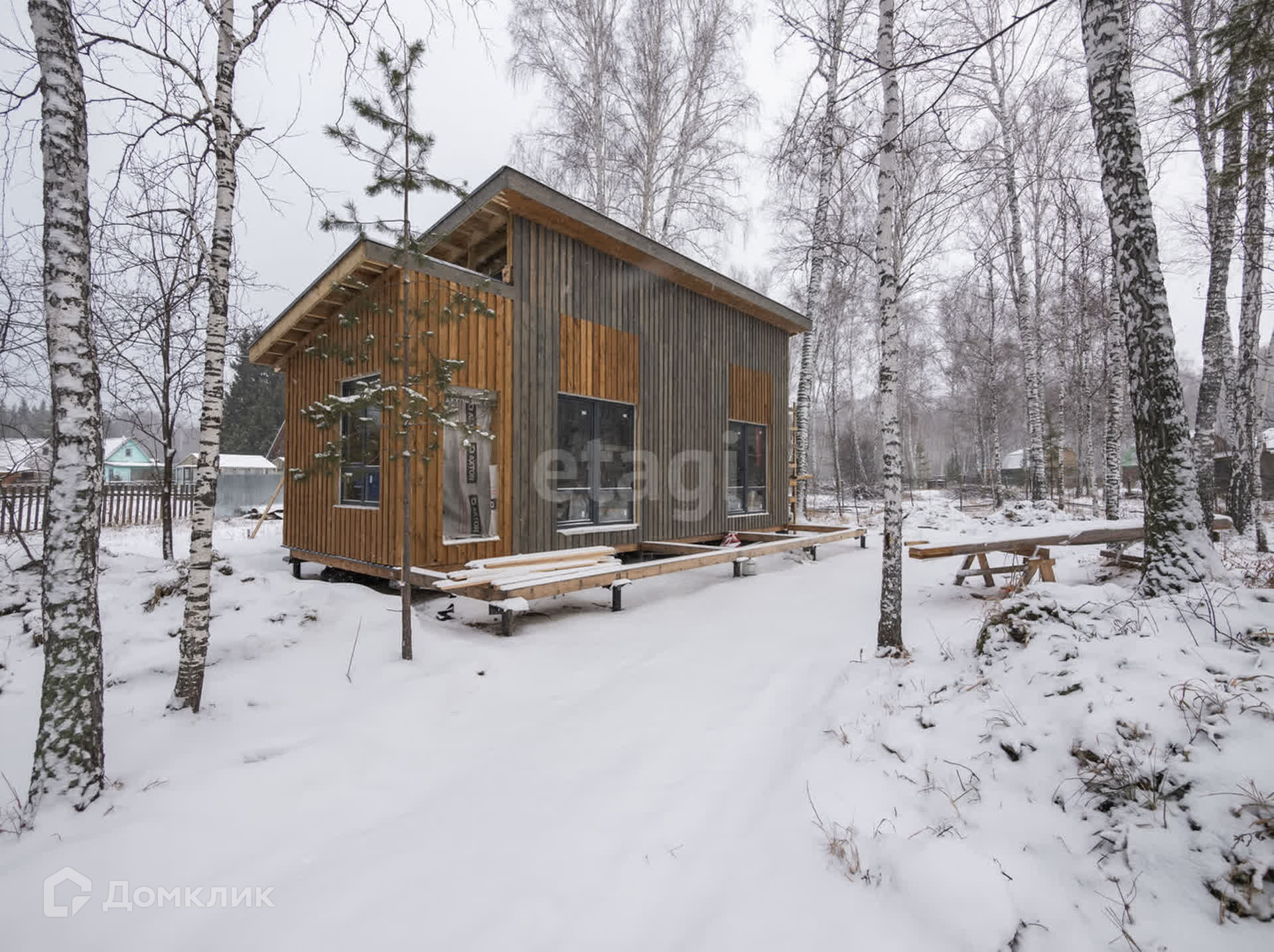 Свайный фундамент + деревянный каркас позволяет эксплуатировать этот дом в зимнее время года как периодически, так и для постоянного проживания.