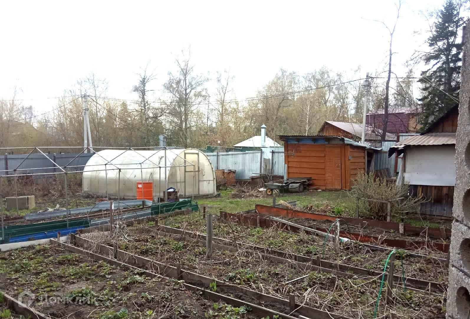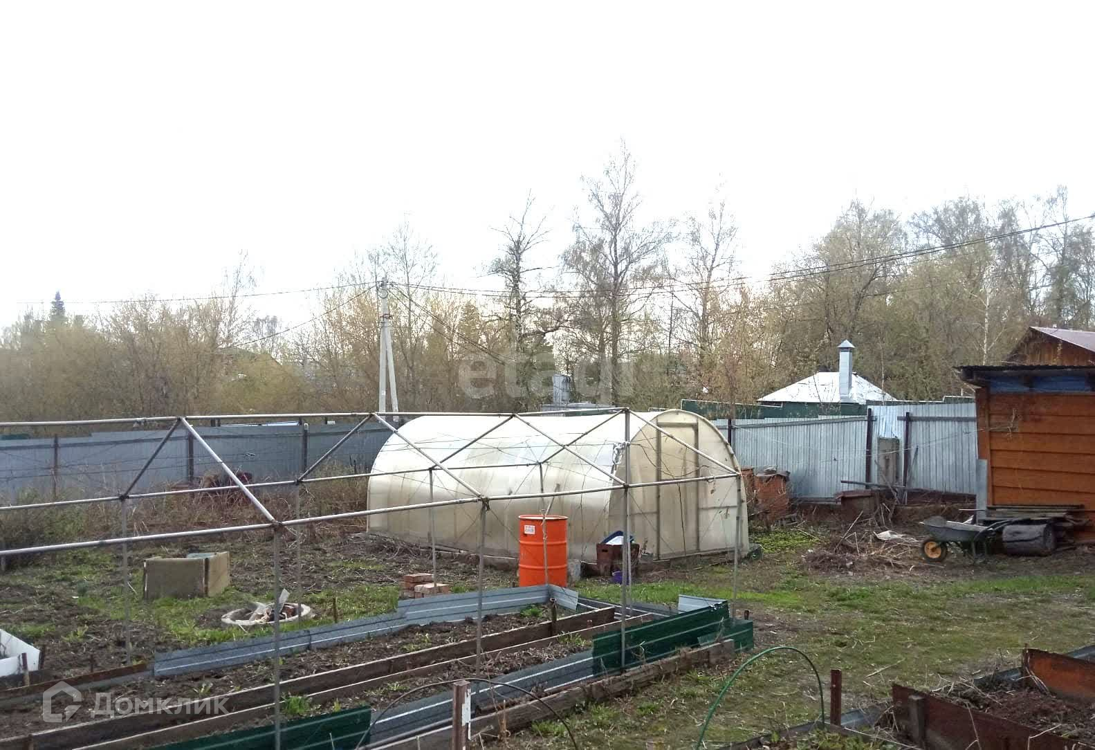 Есть баня, сарай, две большие теплицы, устроены грядки.