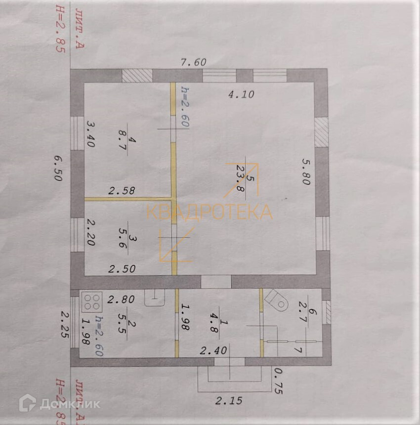 Общая площадь 52 м2