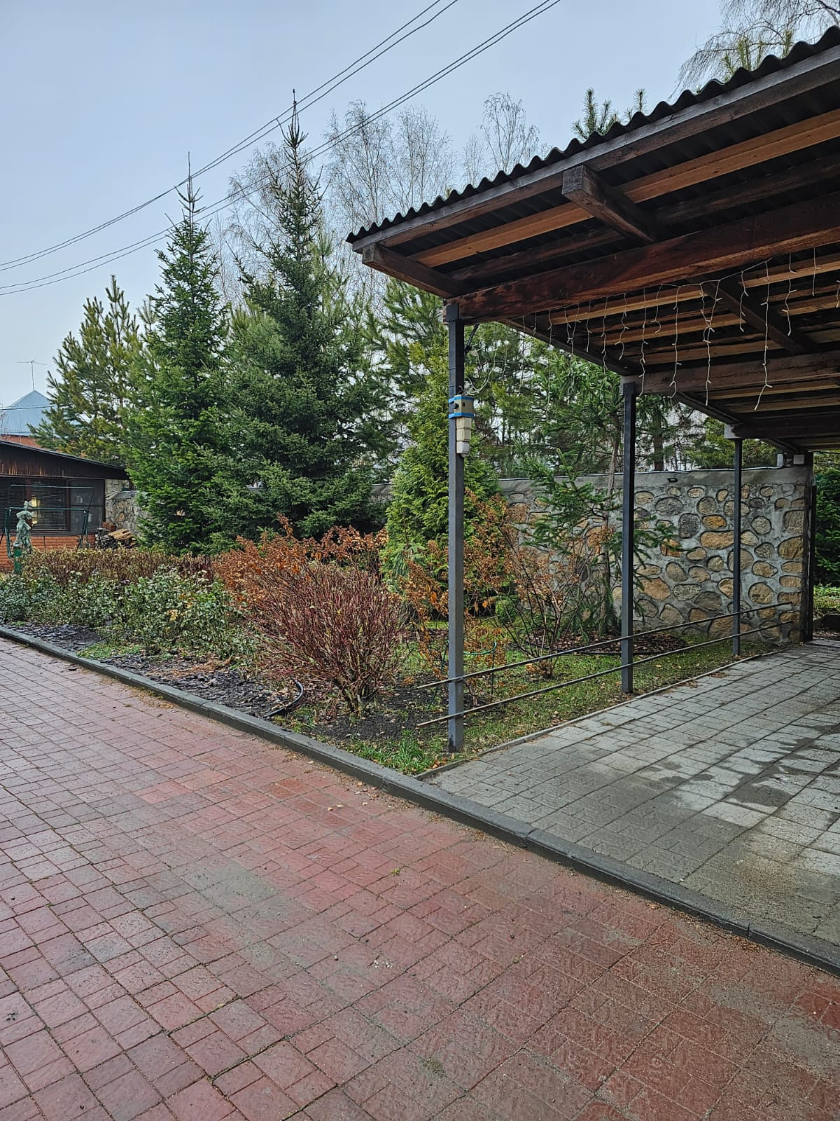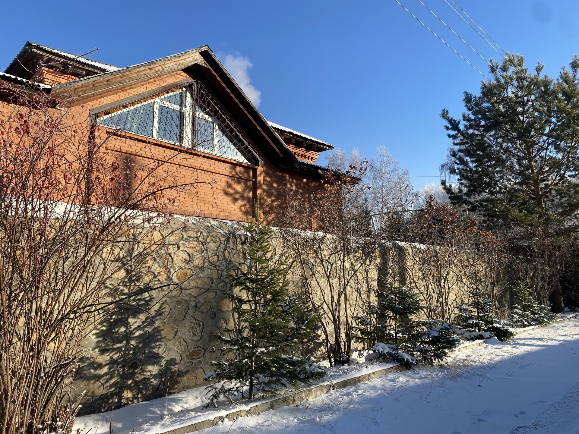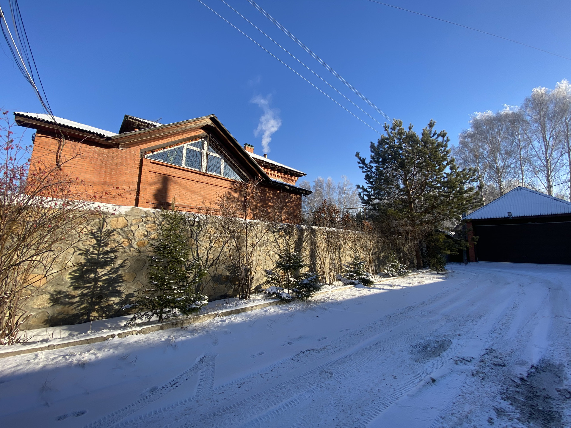 Участок огорожен каменным забором . Для въезда автомобилей установлены автоматические выездные ворота.