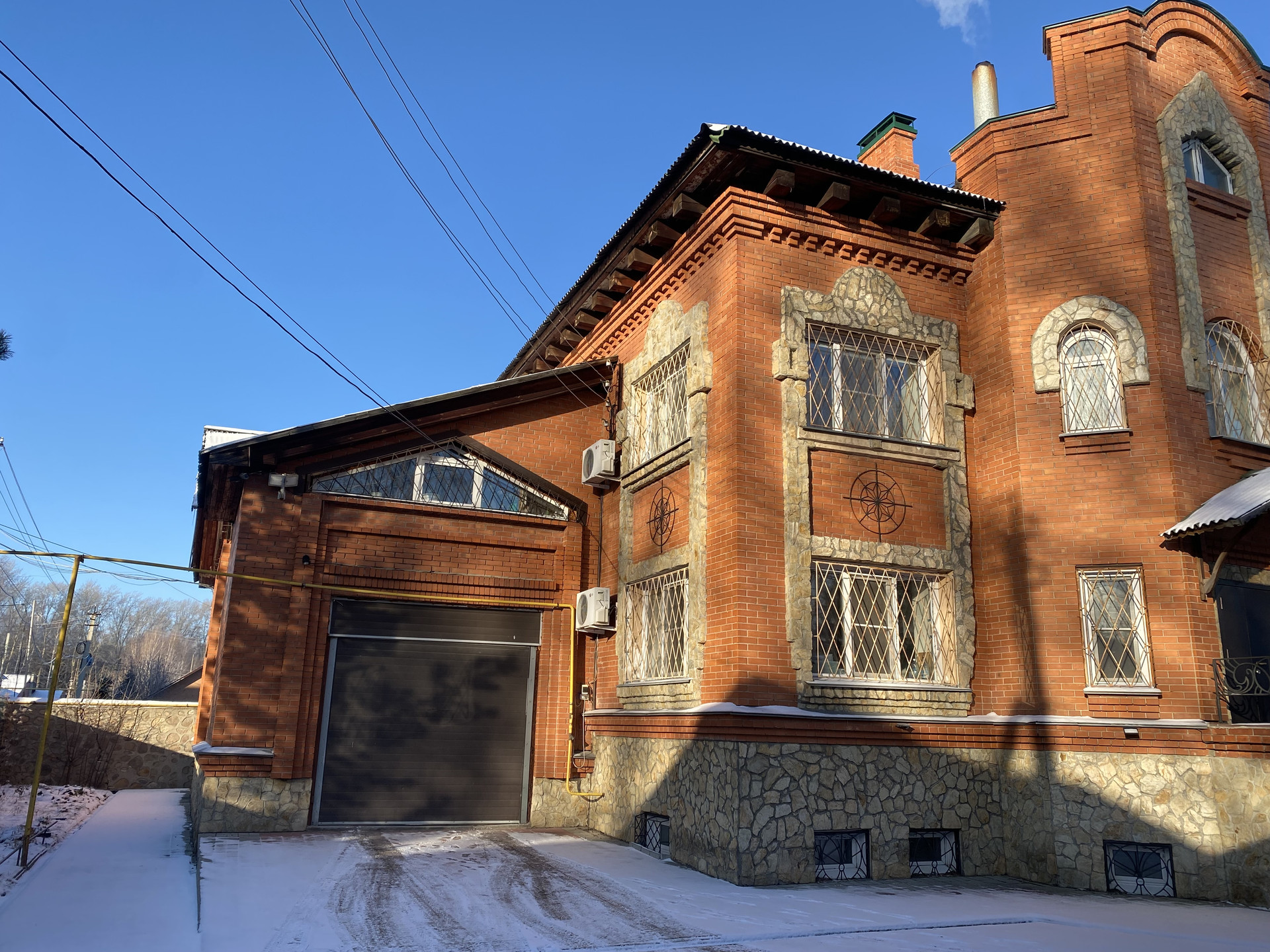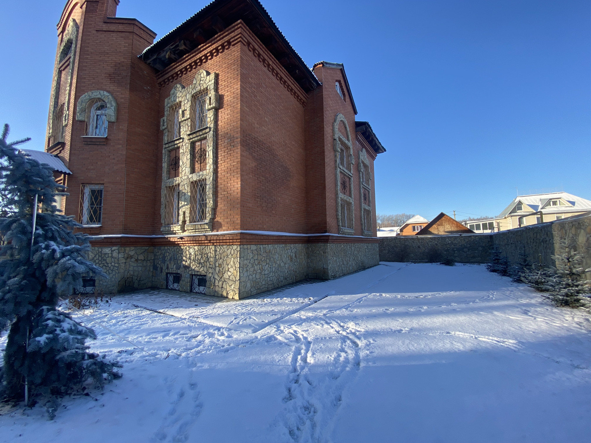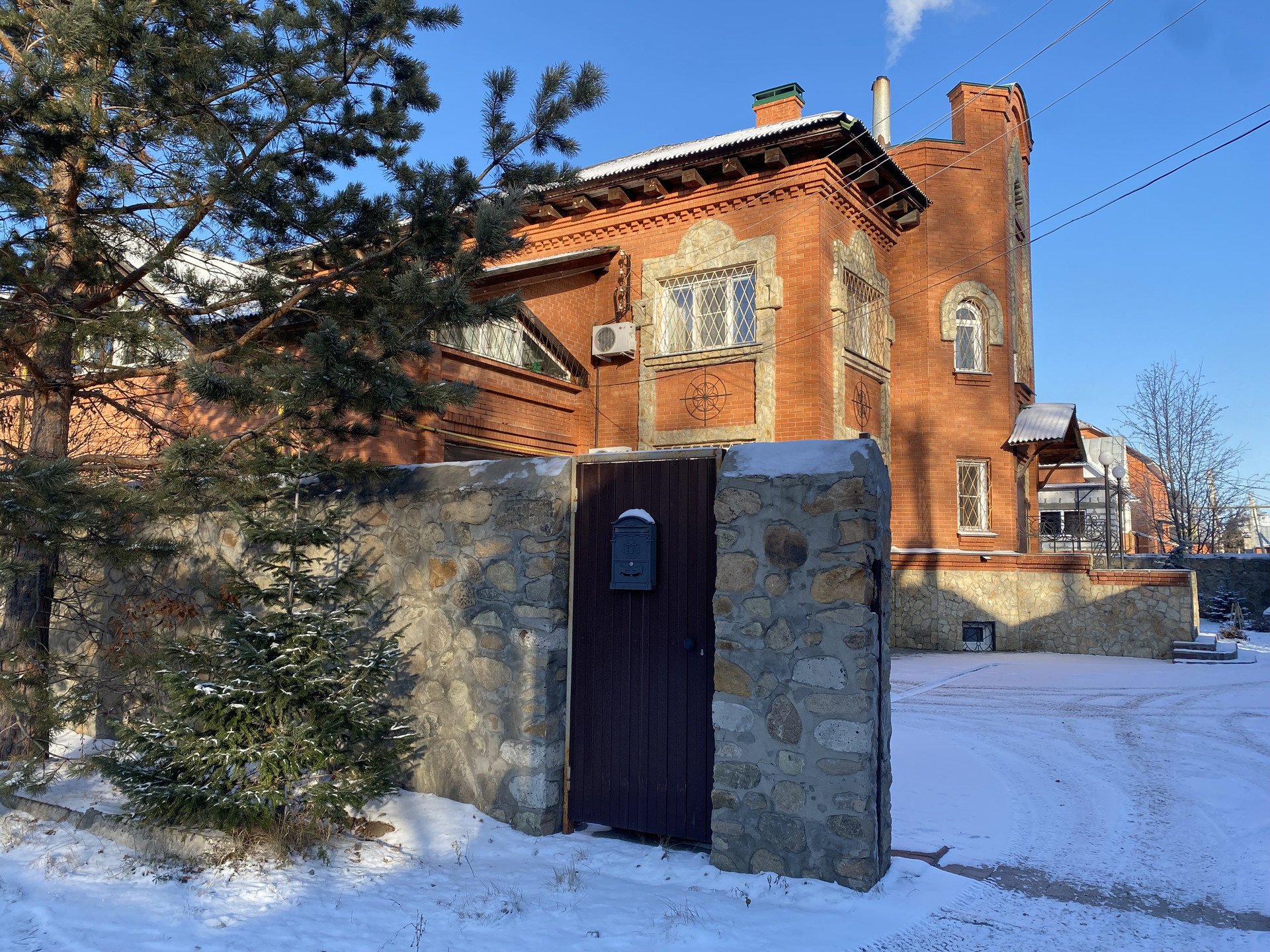 Участок огорожен каменным забором . Для въезда автомобилей установлены автоматические выездные ворота.
